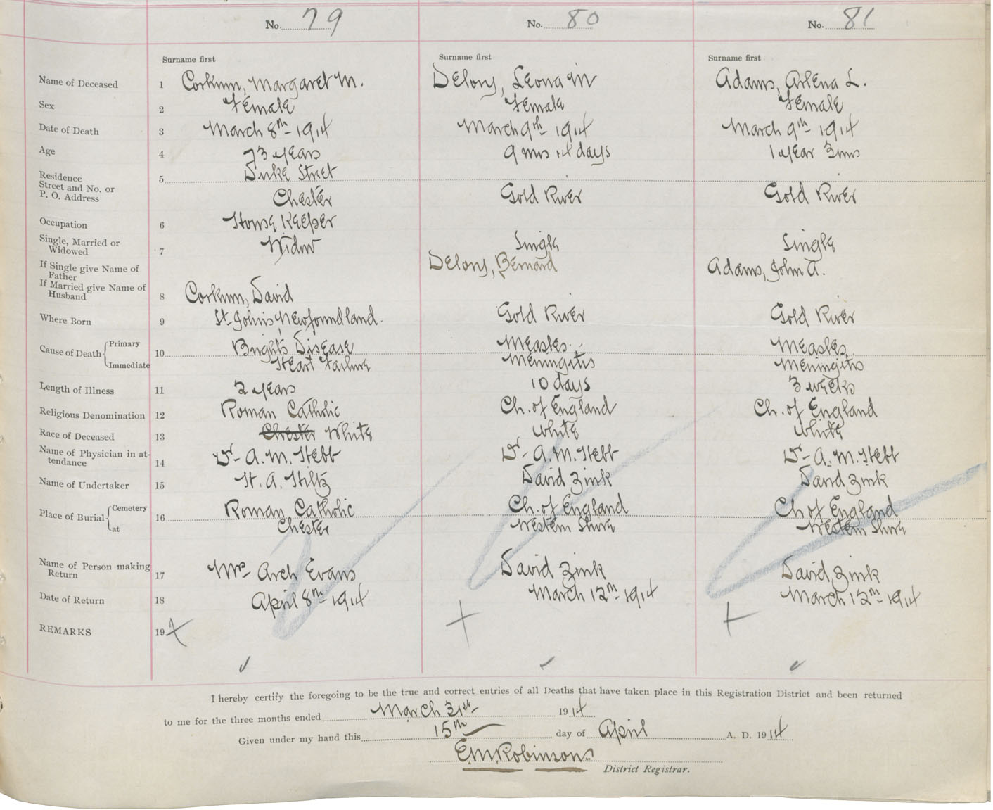 Death Registration: Year: 1914 book: 42 page: 21 number: 79