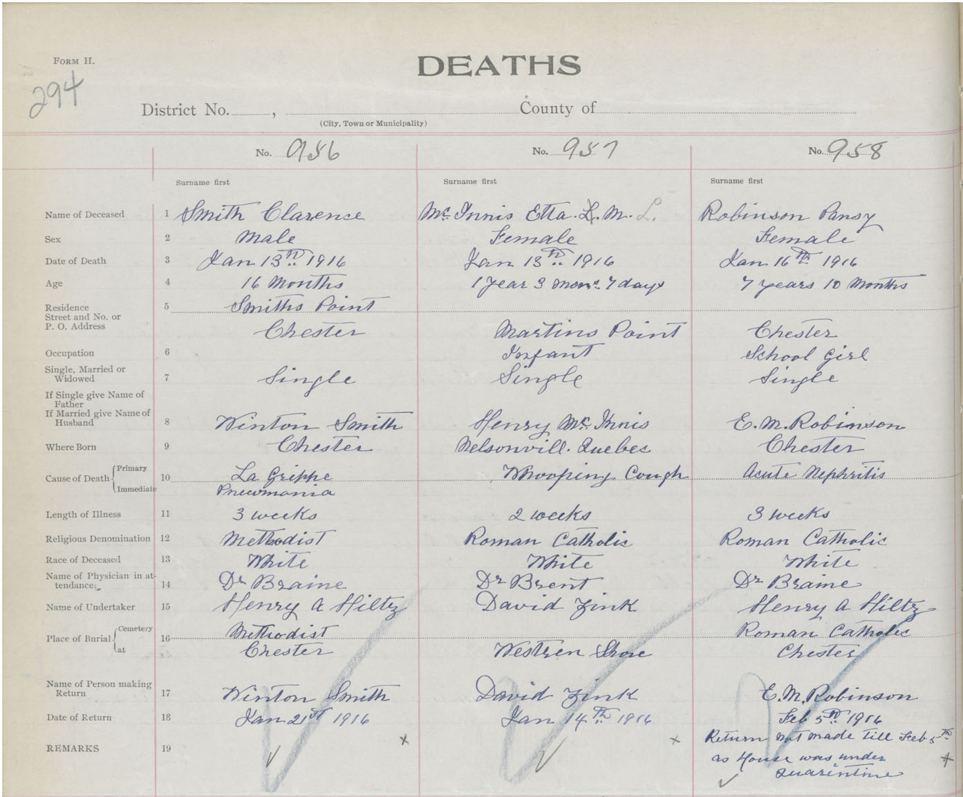 Death Registration: Year: 1916 book: 42 page: 294 number: 958
