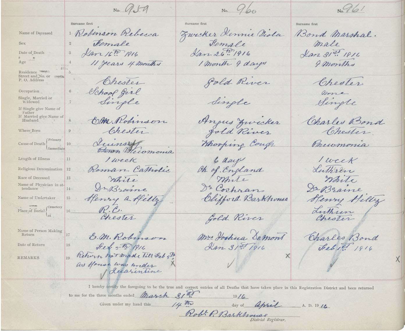 Death Registration: Year: 1916 book: 42 page: 294 number: 961