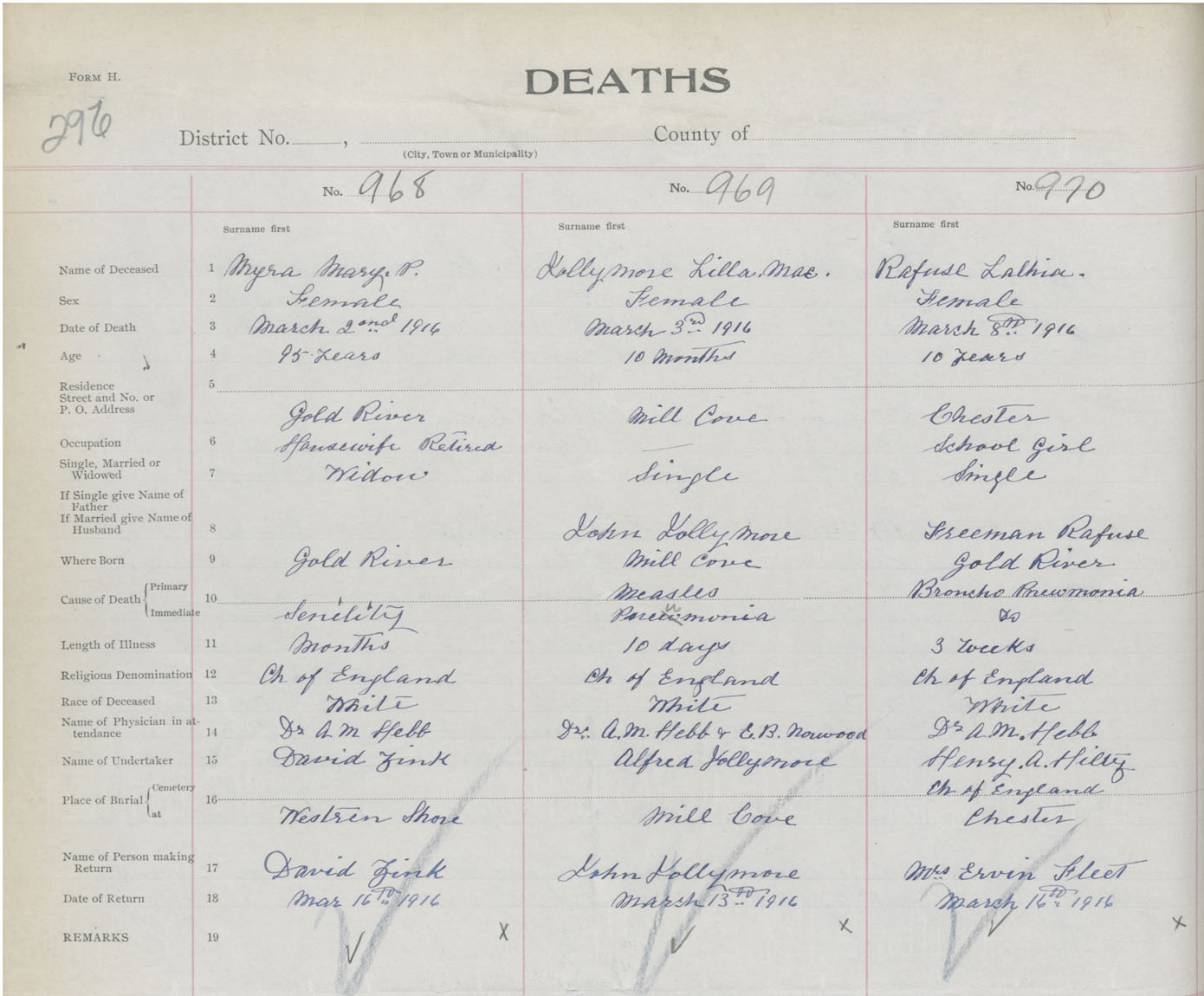 Death Registration: Year: 1916 book: 42 page: 296 number: 970