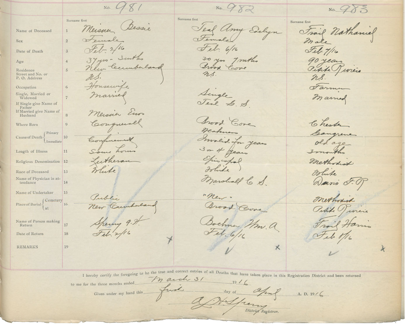 Death Registration: Year: 1916 book: 42 page: 301 number: 983