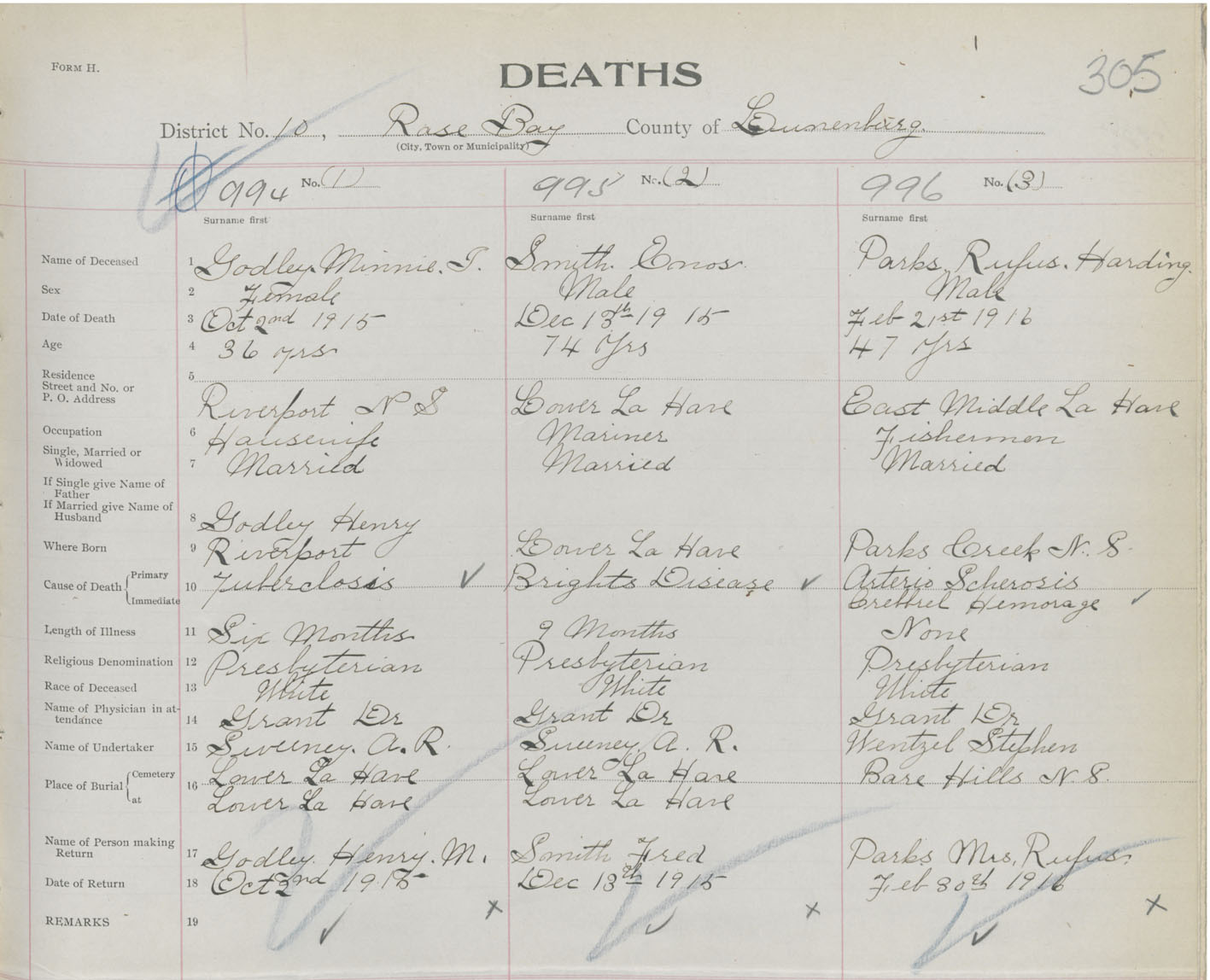 Death Registration: Year: 1916 book: 42 page: 305 number: 996