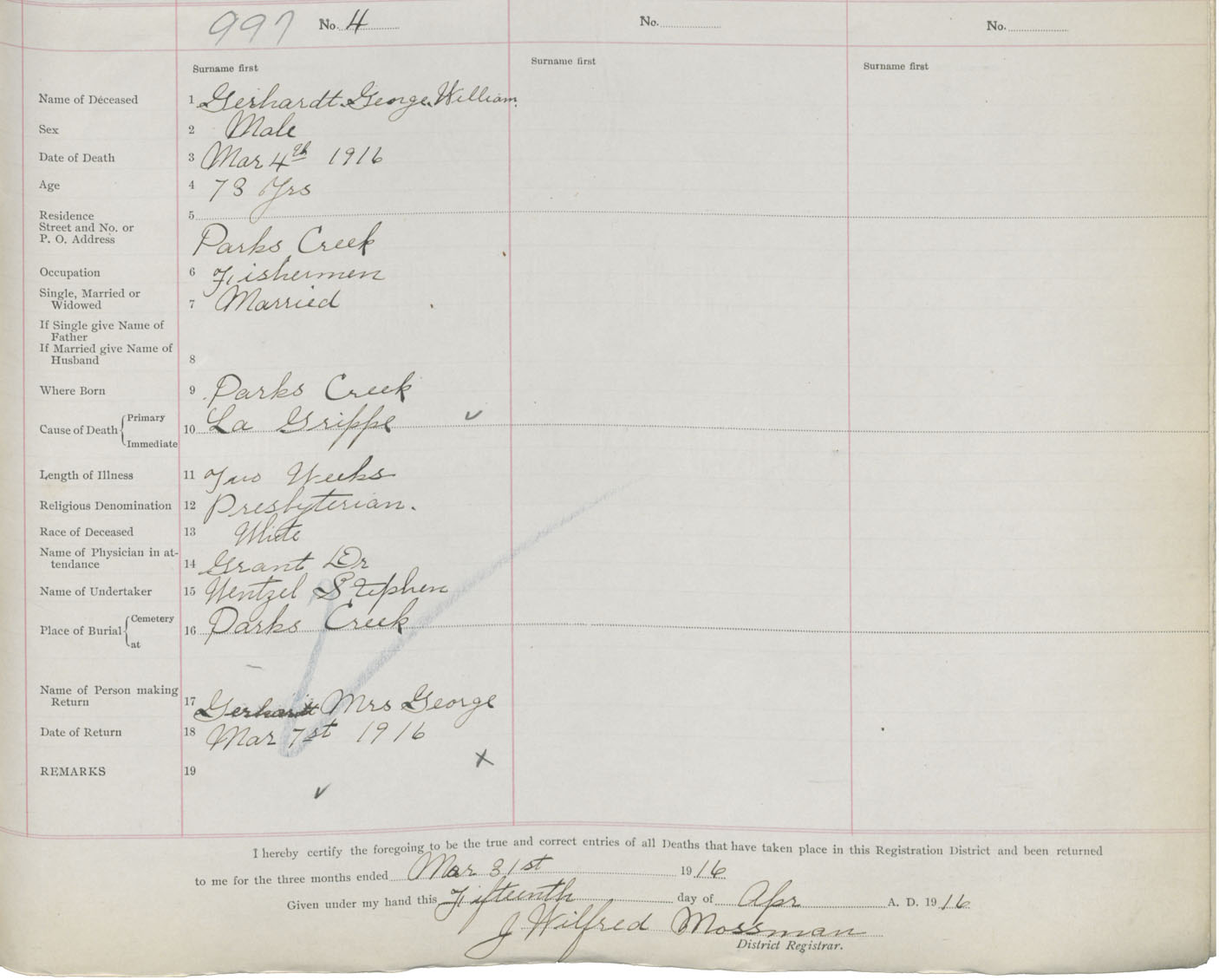 Death Registration: Year: 1916 book: 42 page: 305 number: 997