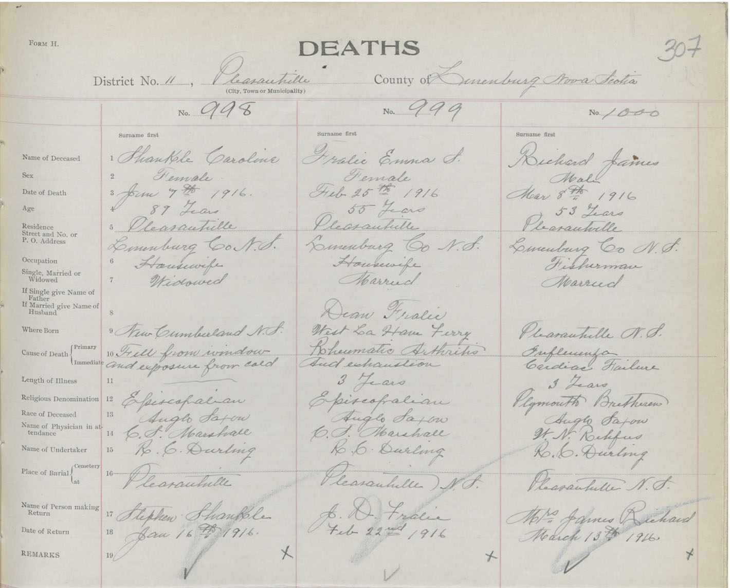 Death Registration: Year: 1916 book: 42 page: 307 number: 1000