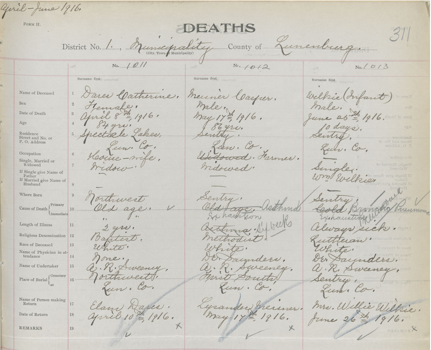Death Registration: Year: 1916 book: 42 page: 311 number: 1013