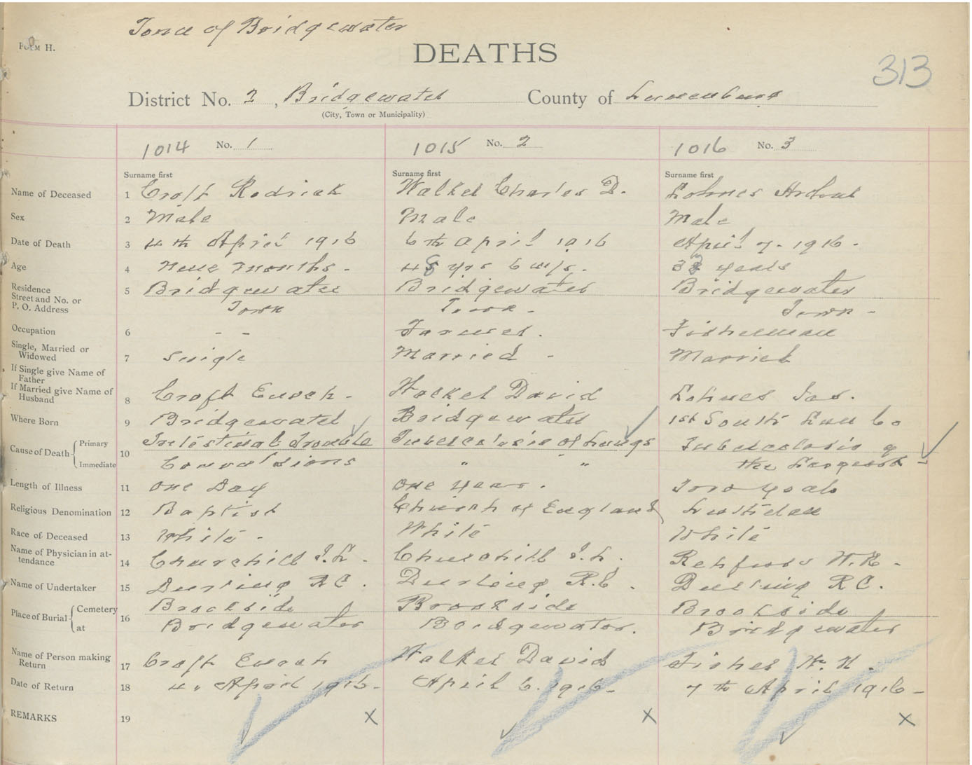 Death Registration: Year: 1916 book: 42 page: 313 number: 1016