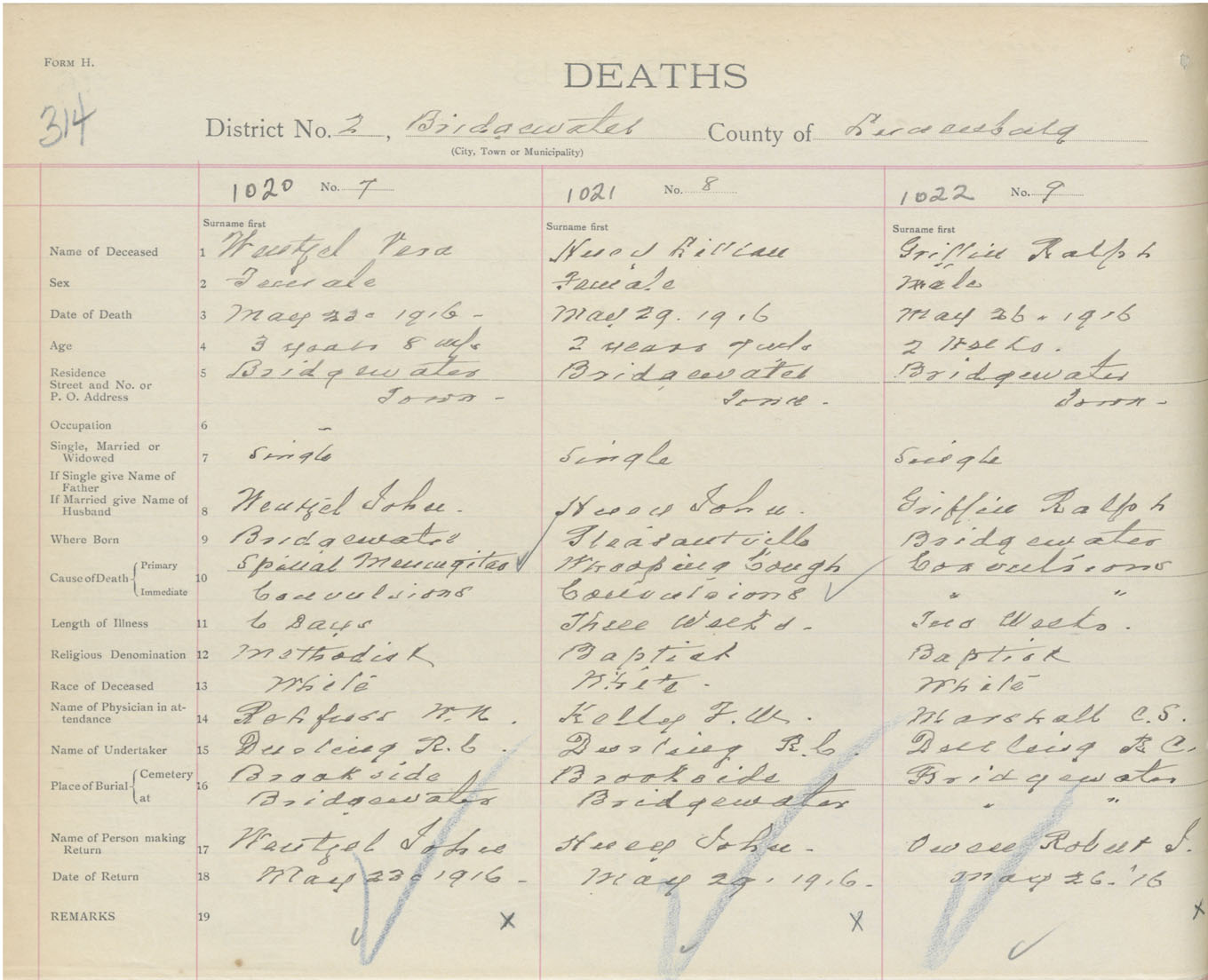 Death Registration: Year: 1916 book: 42 page: 314 number: 1022