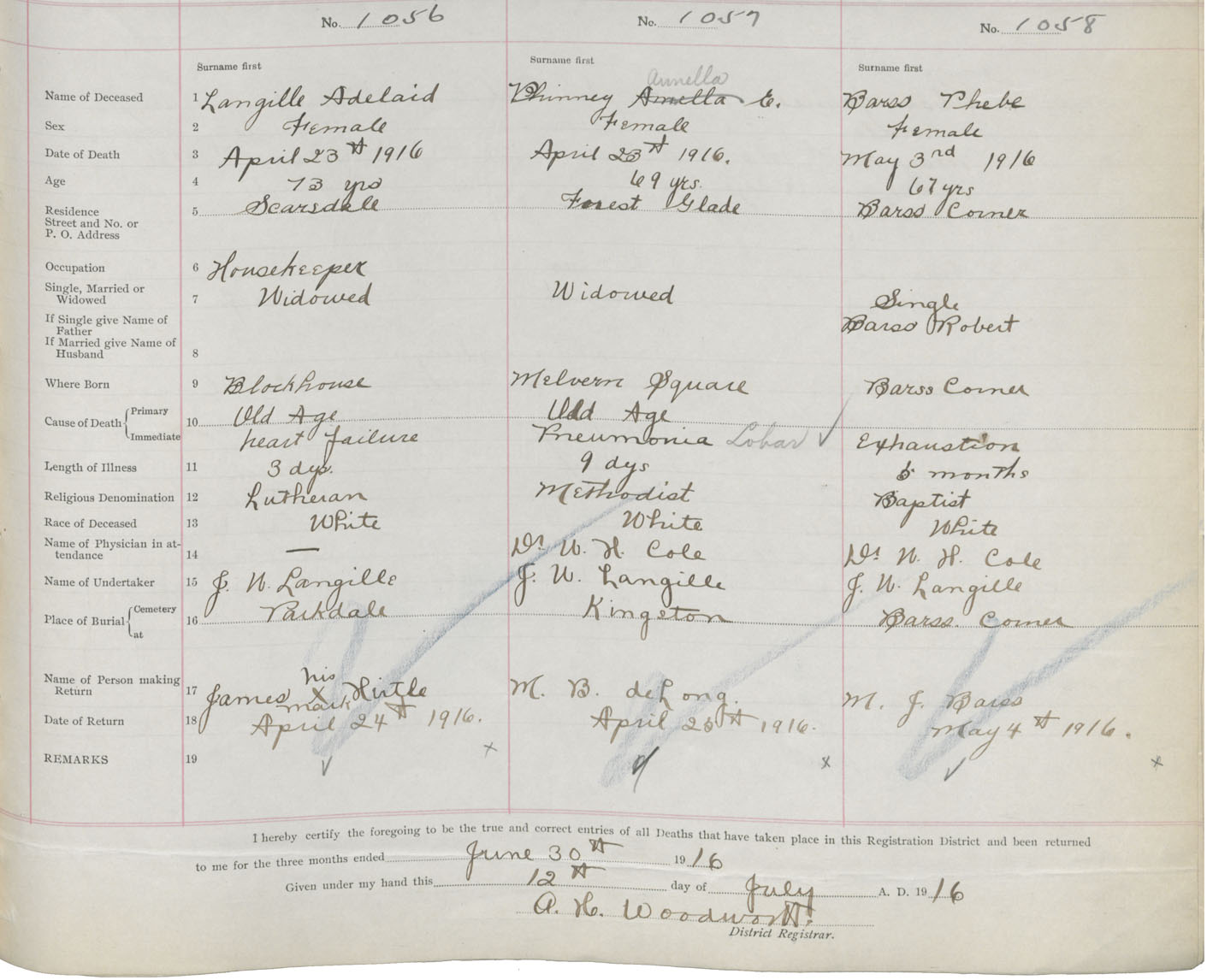 Death Registration: Year: 1916 book: 42 page: 321 number: 1058