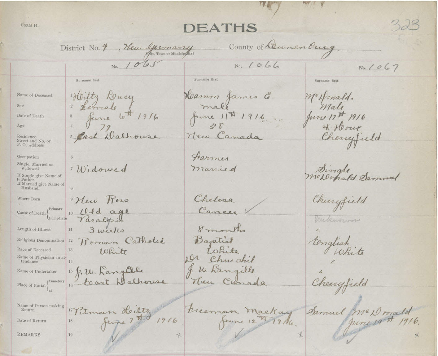 Death Registration: Year: 1916 book: 42 page: 323 number: 1067