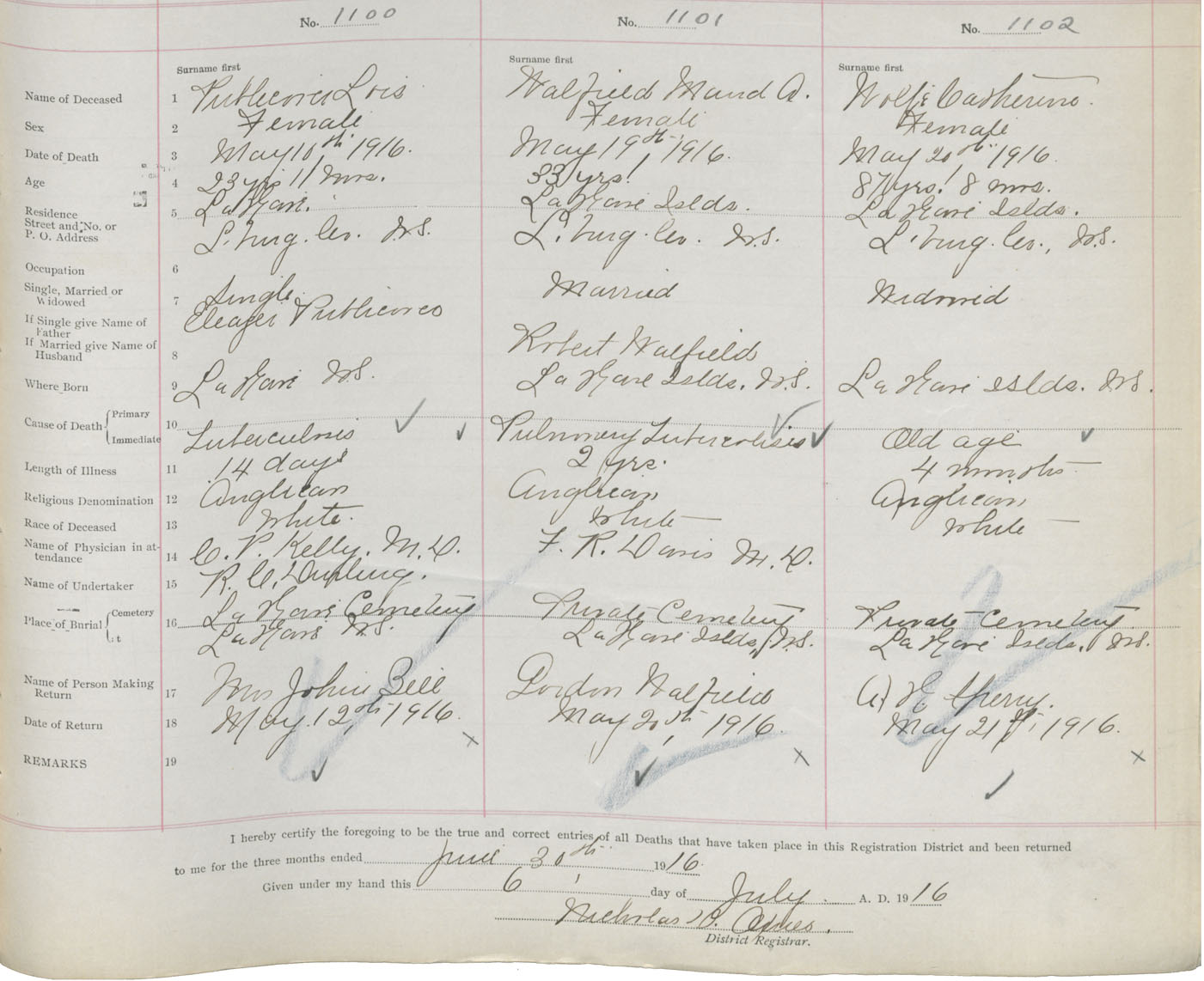 Death Registration: Year: 1916 book: 42 page: 335 number: 1102