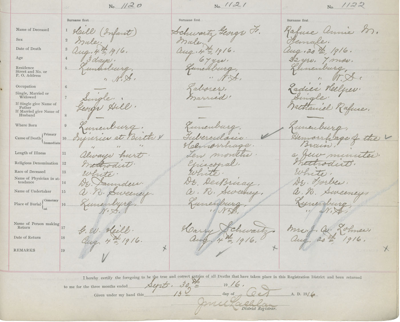 Death Registration: Year: 1916 book: 42 page: 343 number: 1122