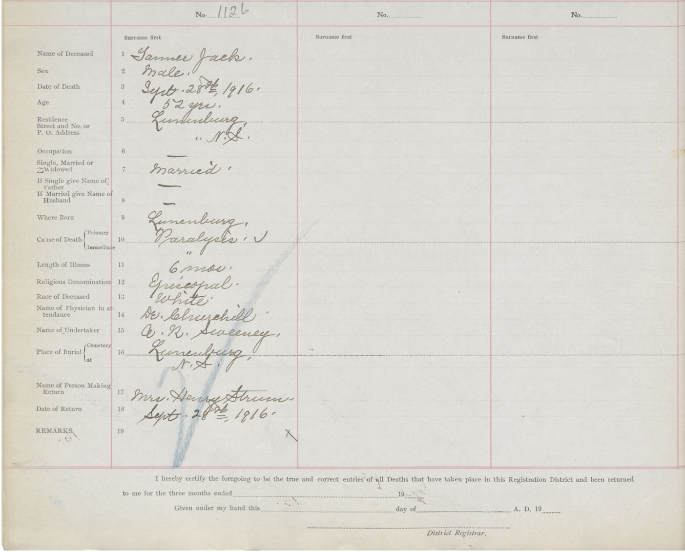 Death Registration: Year: 1916 book: 42 page: 344 number: 1126