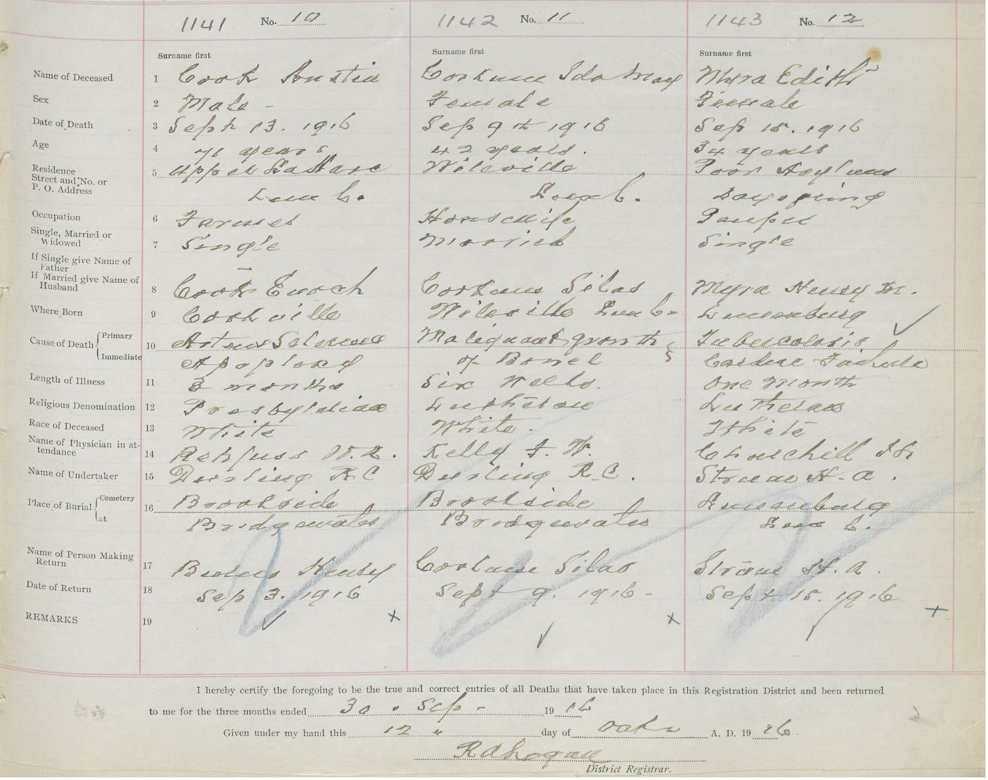 Death Registration: Year: 1916 book: 42 page: 351 number: 1143