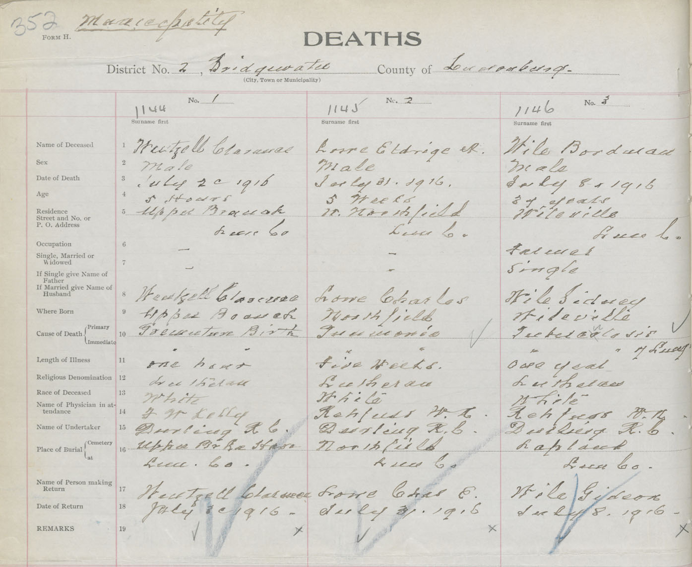 Death Registration: Year: 1916 book: 42 page: 352 number: 1146