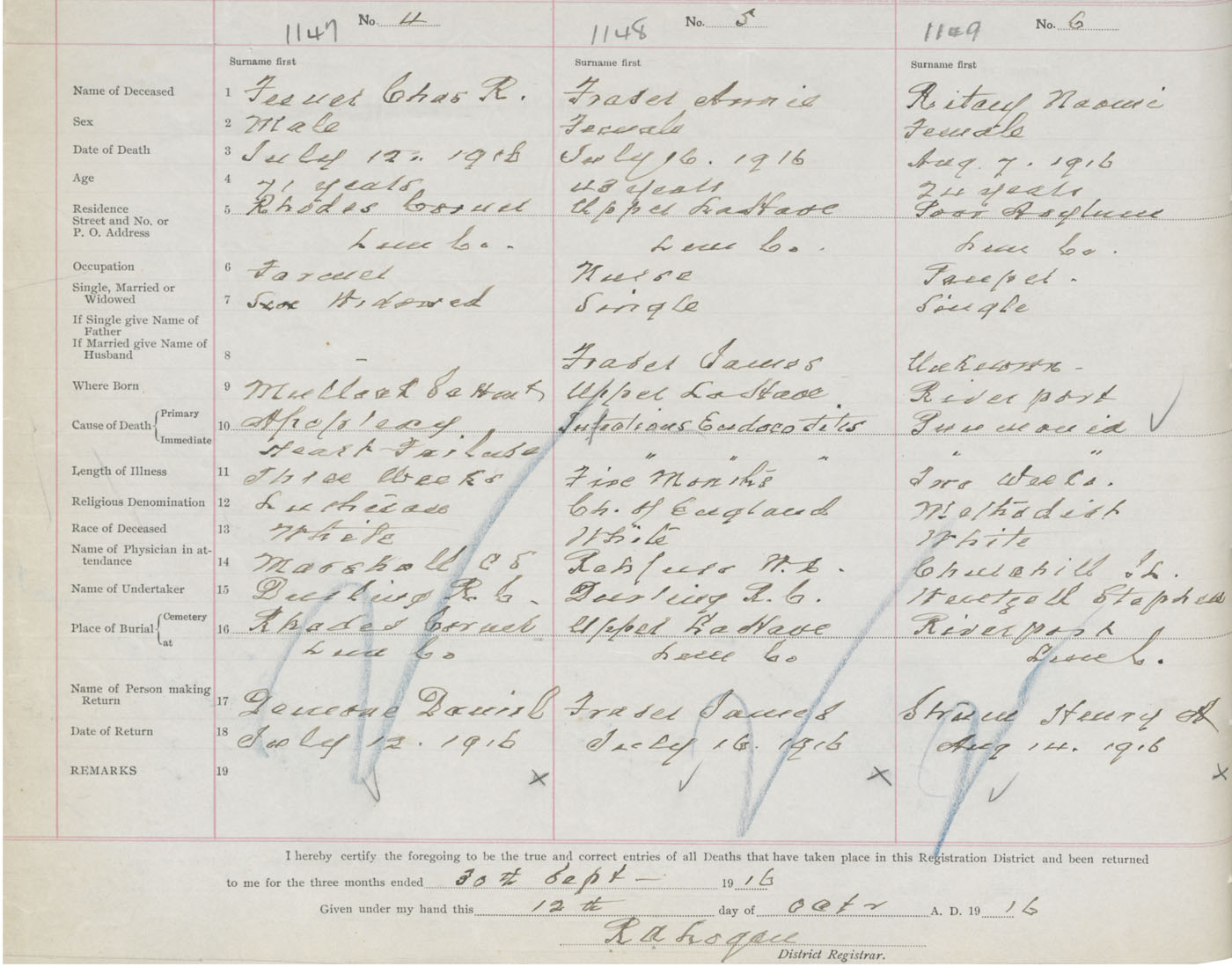 Death Registration: Year: 1916 book: 42 page: 352 number: 1149