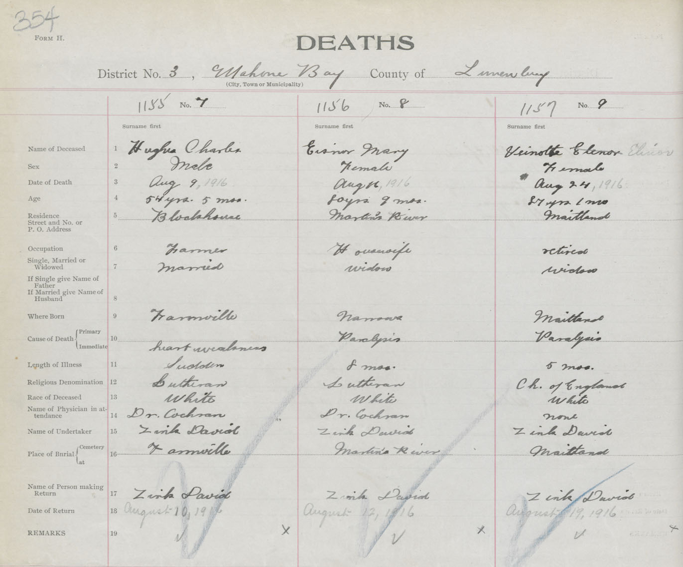 Death Registration: Year: 1916 book: 42 page: 354 number: 1157