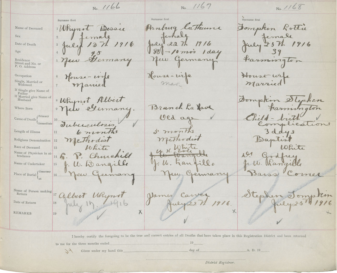 Death Registration: Year: 1916 book: 42 page: 357 number: 1168