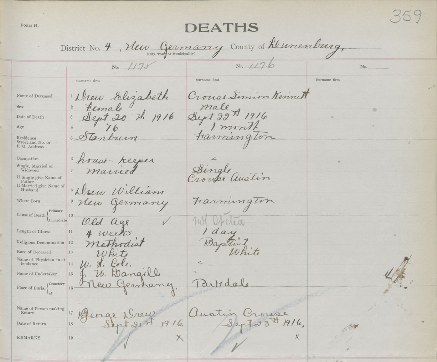 Death Registration: Year: 1916 book: 42 page: 359 number: 1176