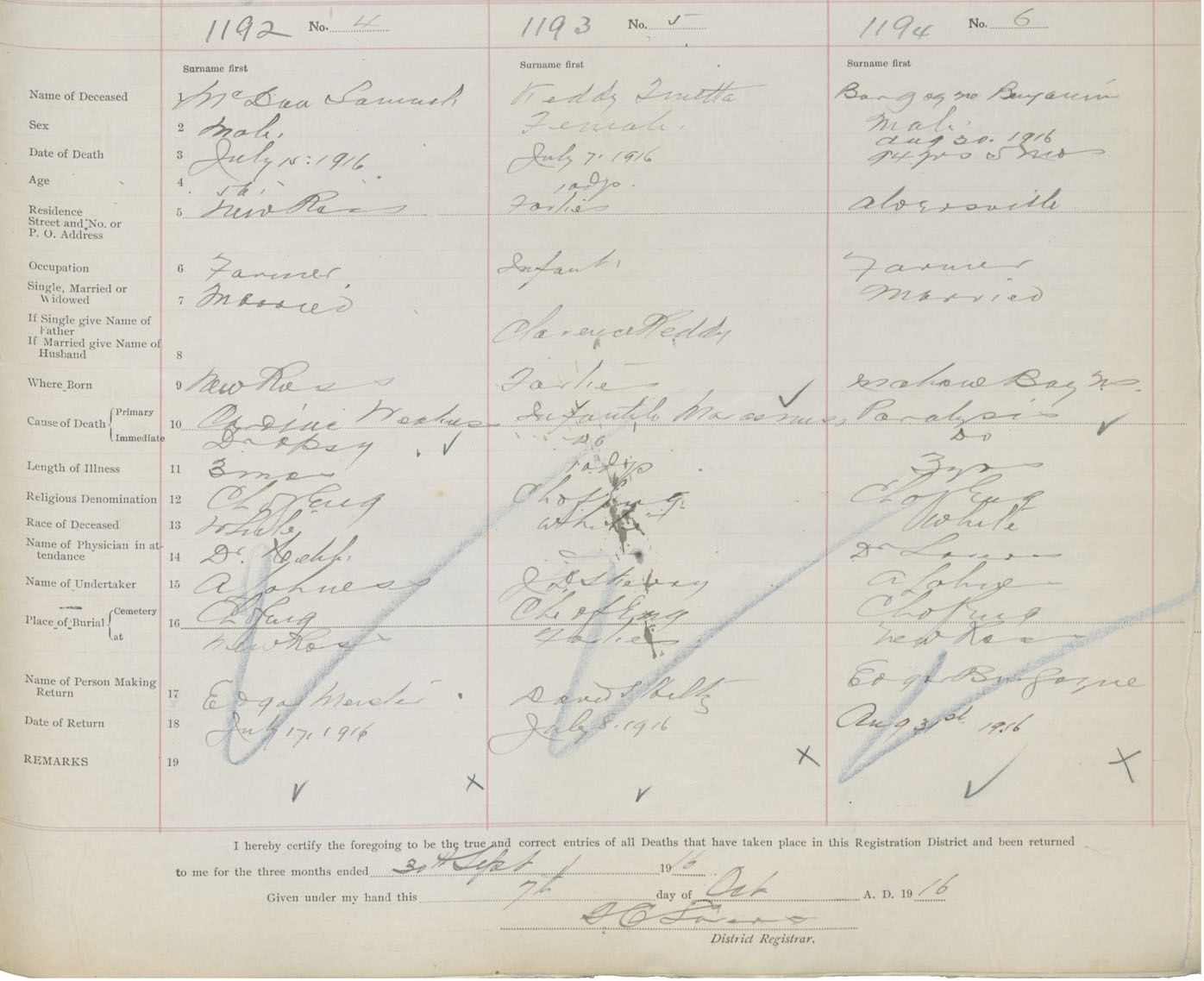 Death Registration: Year: 1916 book: 42 page: 365 number: 1194