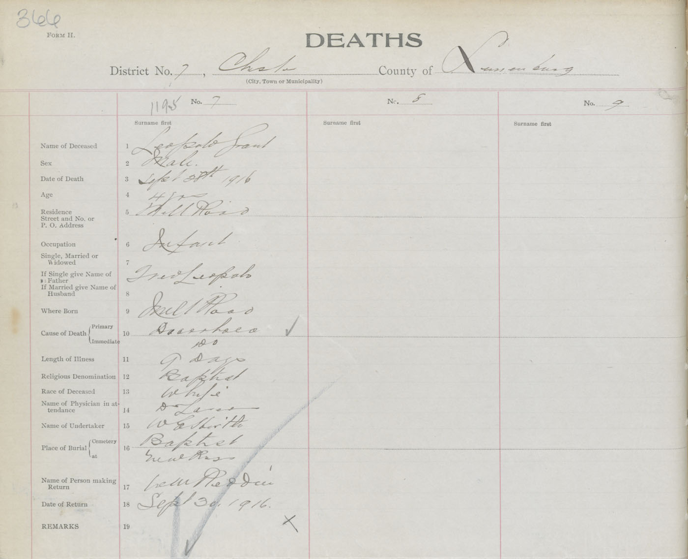 Death Registration: Year: 1916 book: 42 page: 366 number: 1195