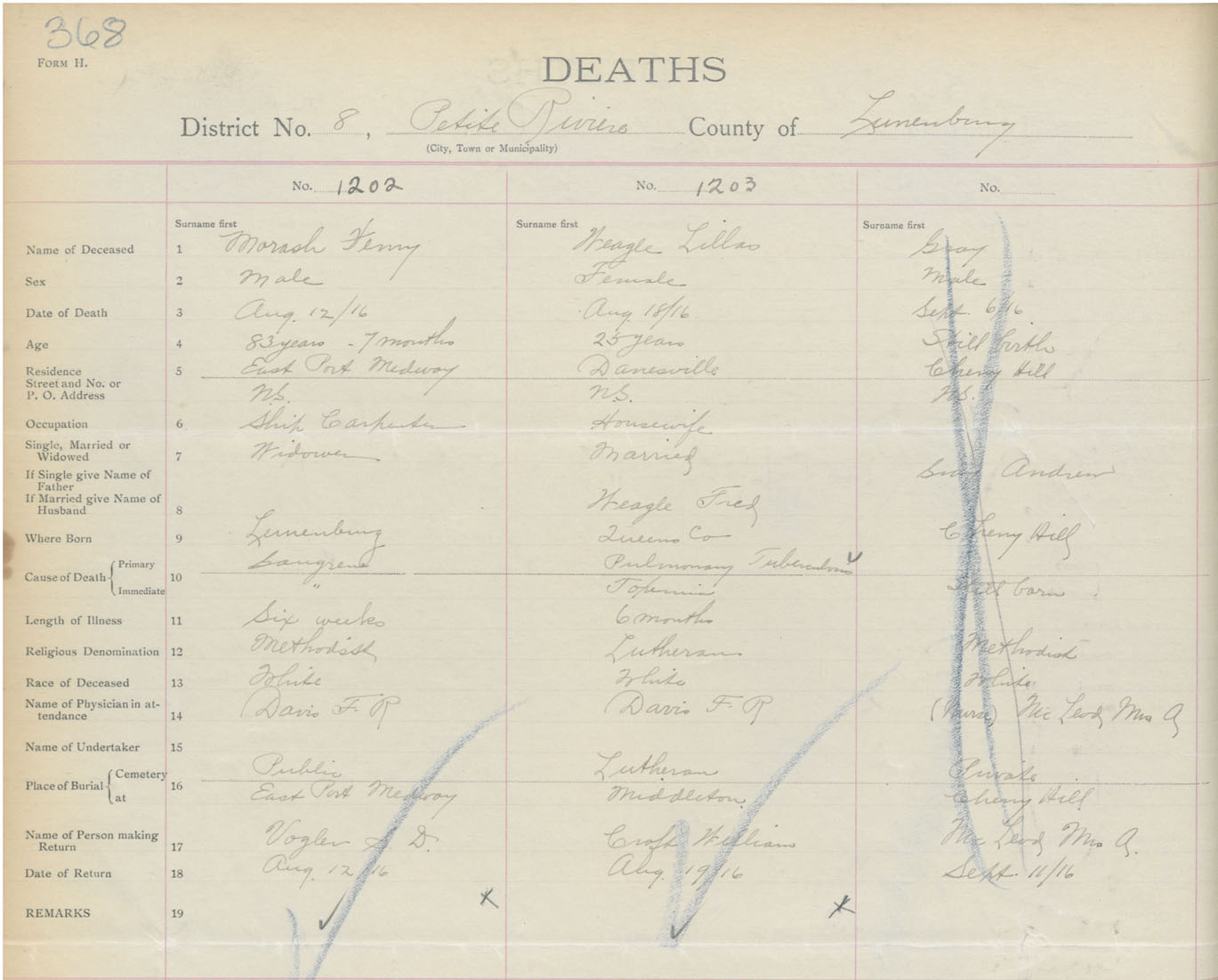Death Registration: Year: 1916 book: 42 page: 368 number: 1203