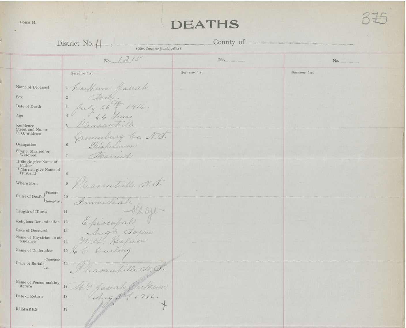 Death Registration: Year: 1916 book: 42 page: 375 number: 1215