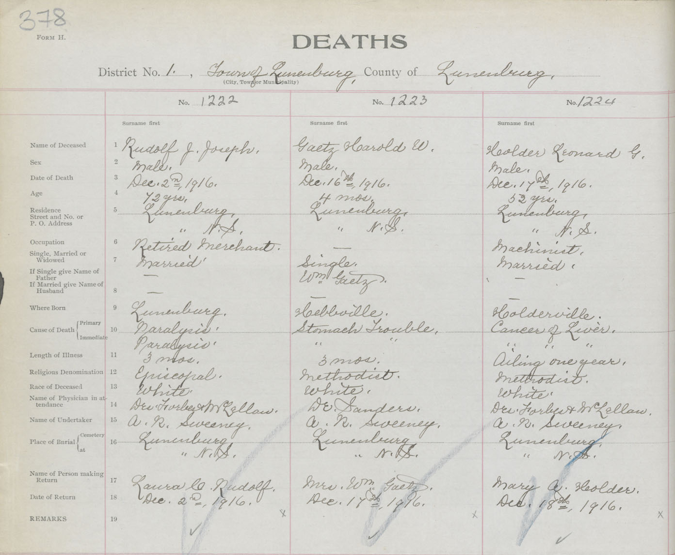 Death Registration: Year: 1916 book: 42 page: 378 number: 1224