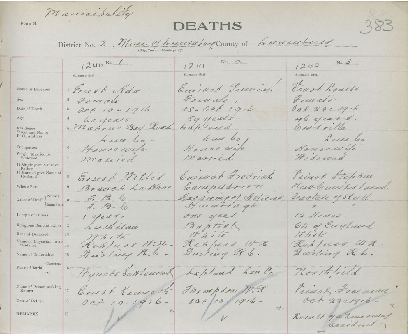 Death Registration: Year: 1916 book: 42 page: 383 number: 1240
