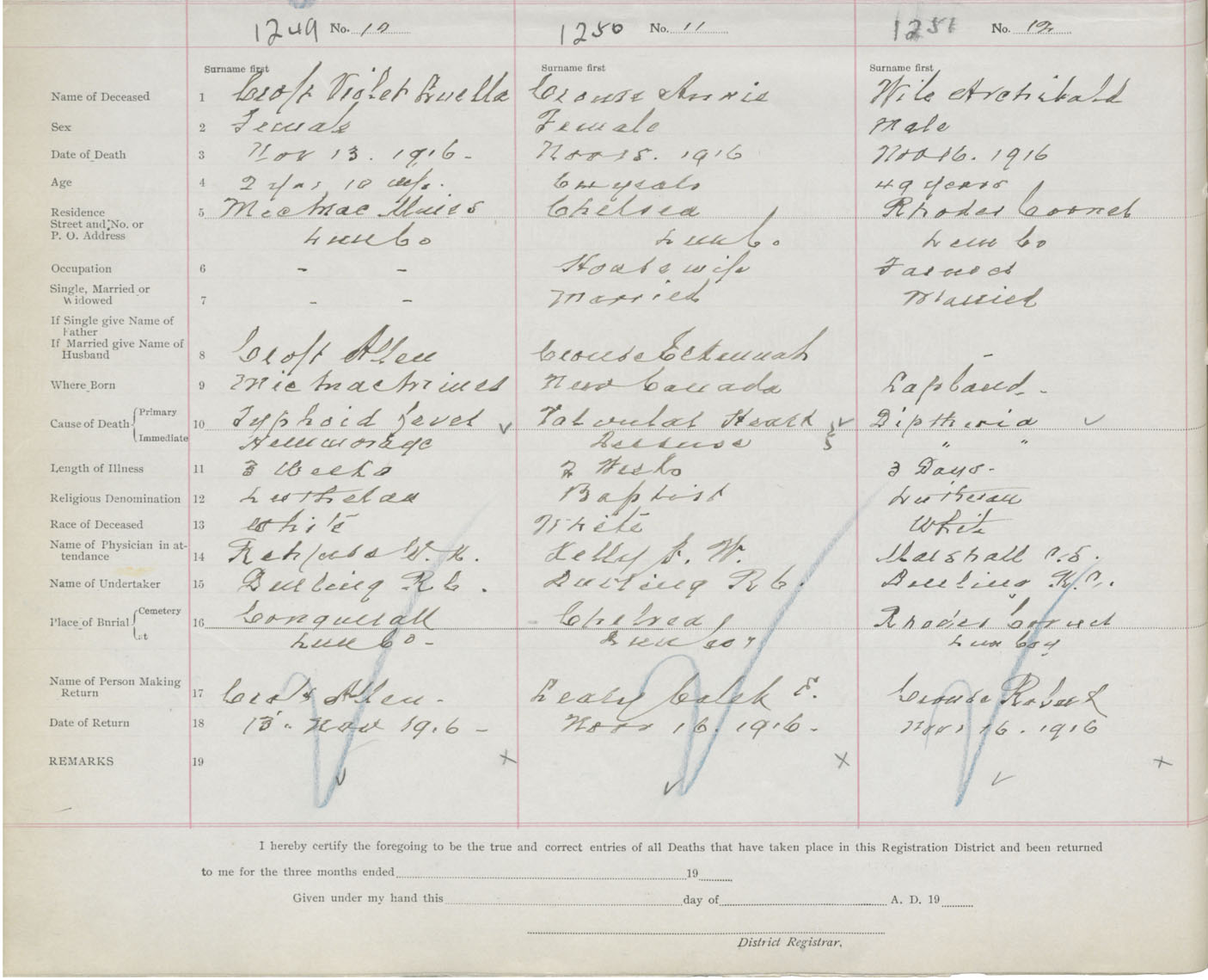 Death Registration: Year: 1916 book: 42 page: 384 number: 1249
