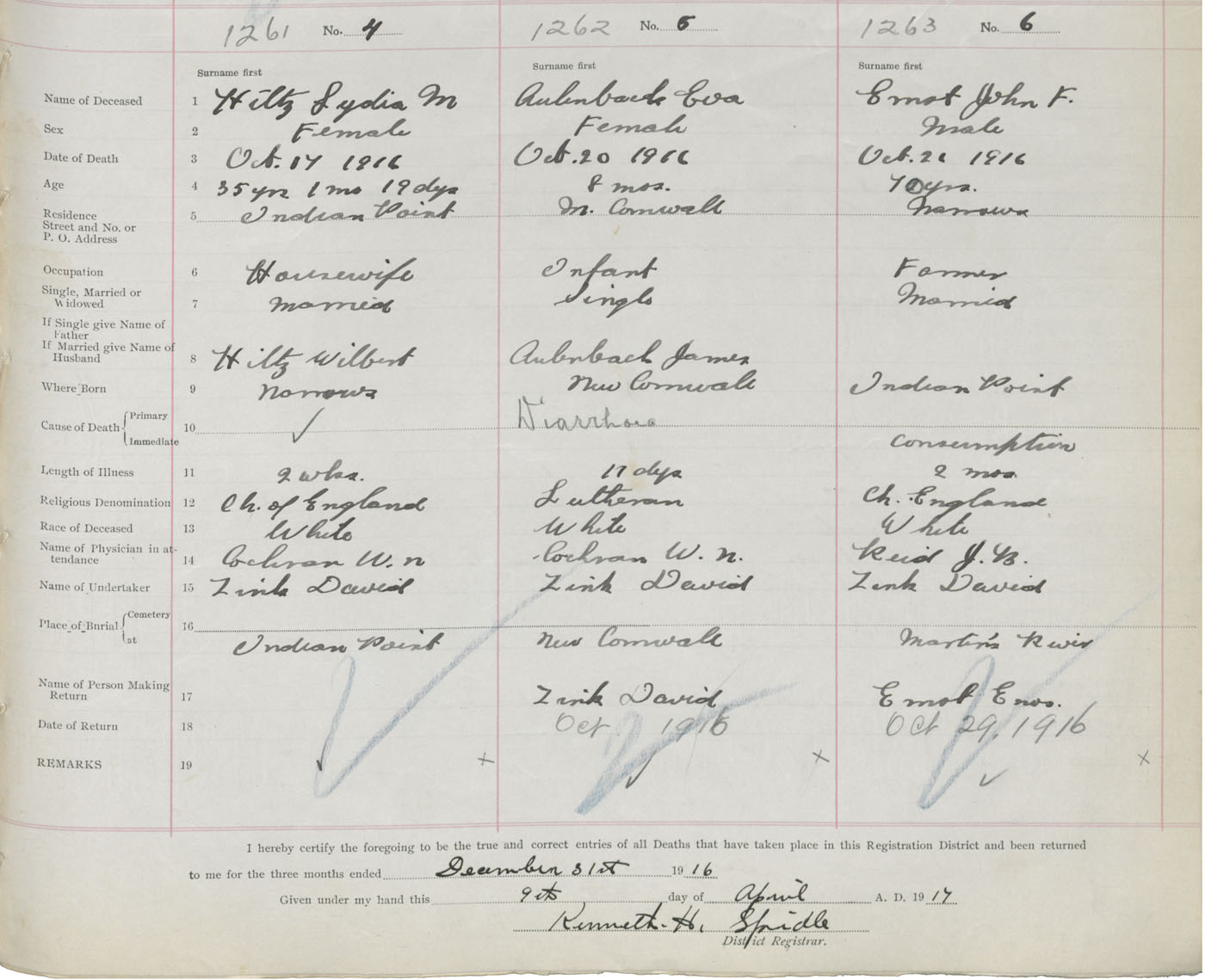 Death Registration: Year: 1916 book: 42 page: 387 number: 1261