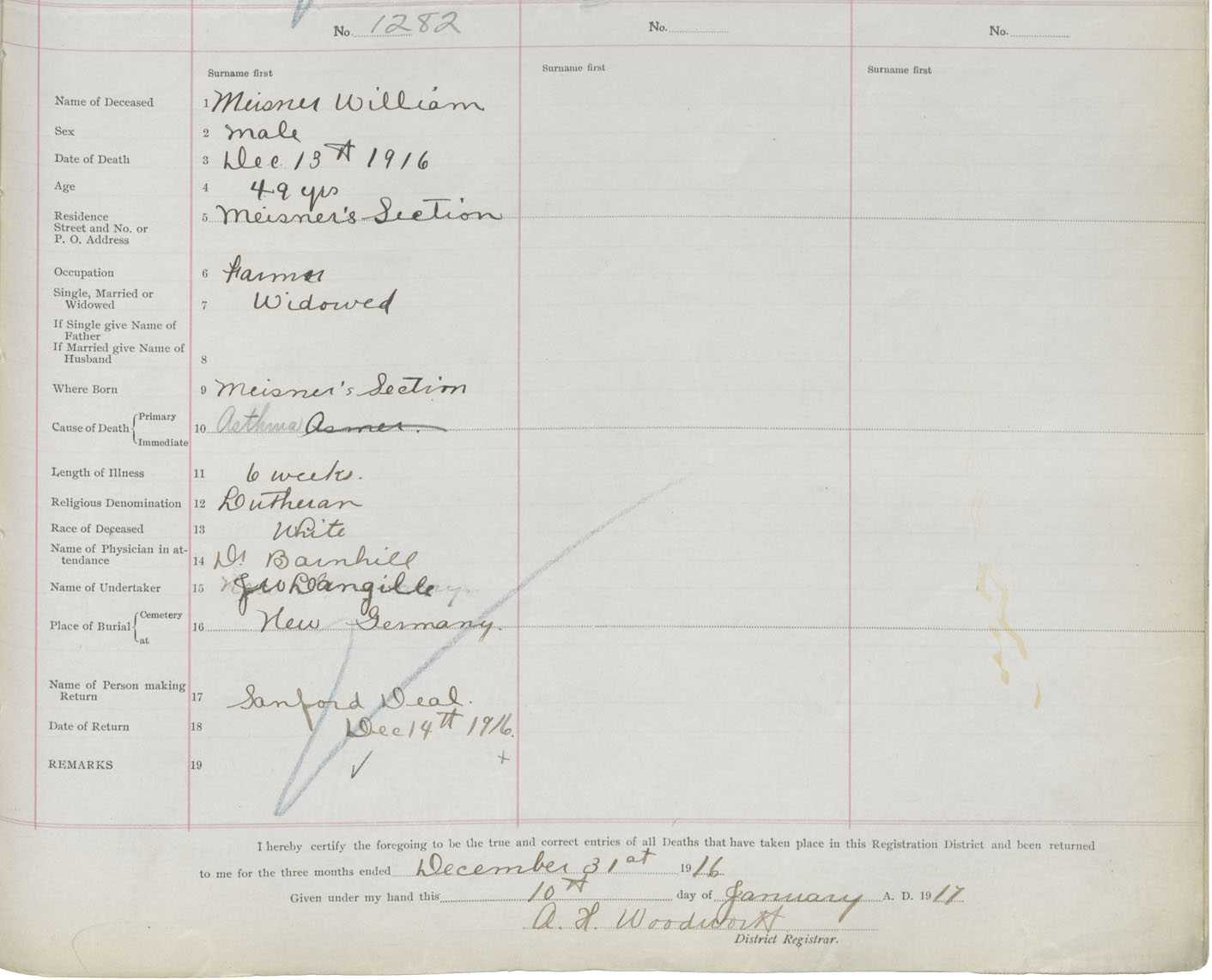 Death Registration: Year: 1916 book: 42 page: 391 number: 1282