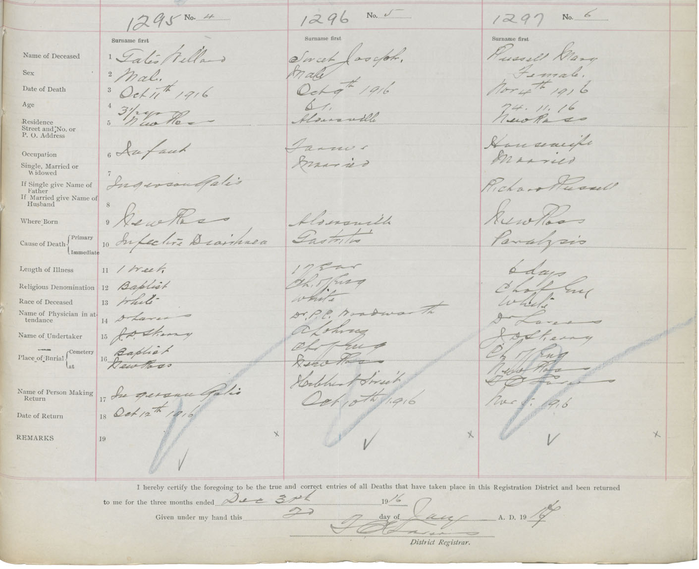 Death Registration: Year: 1916 book: 42 page: 397 number: 1295