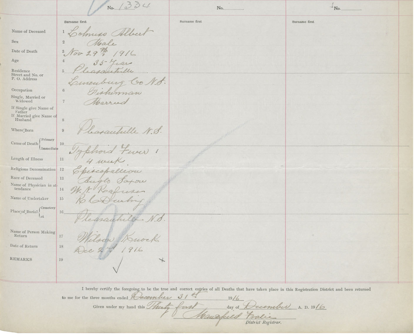 Death Registration: Year: 1916 book: 42 page: 407 number: 1334