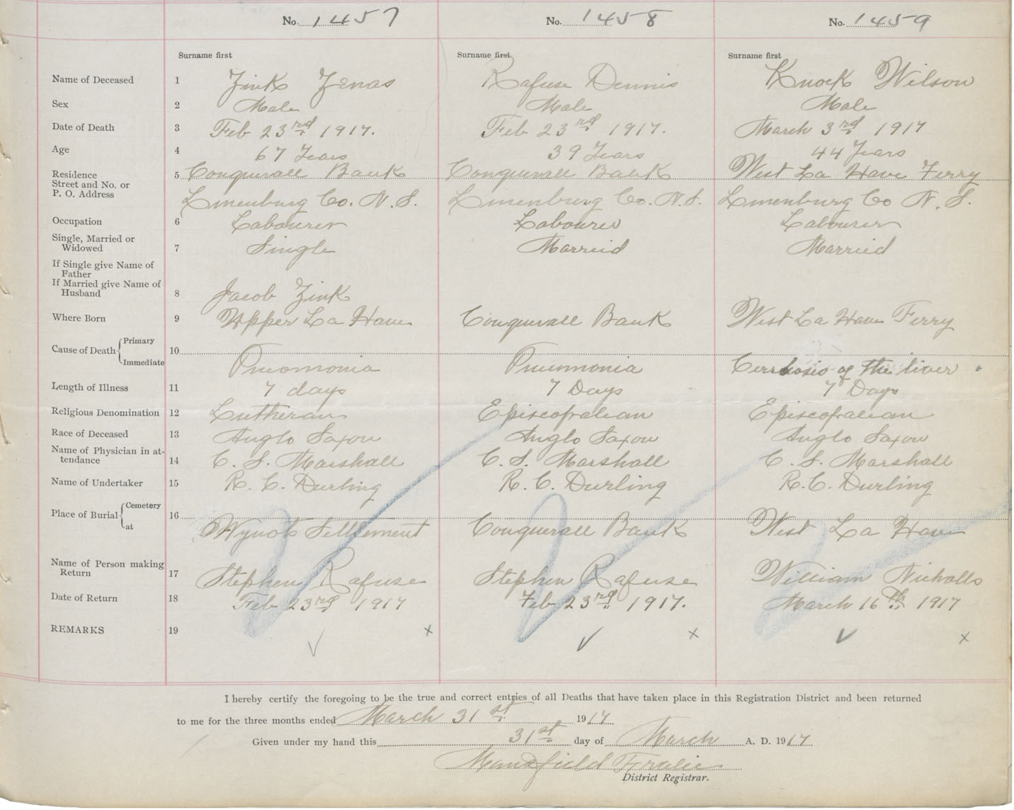 Death Registration: Year: 1917 book: 42 page: 435 number: 1459