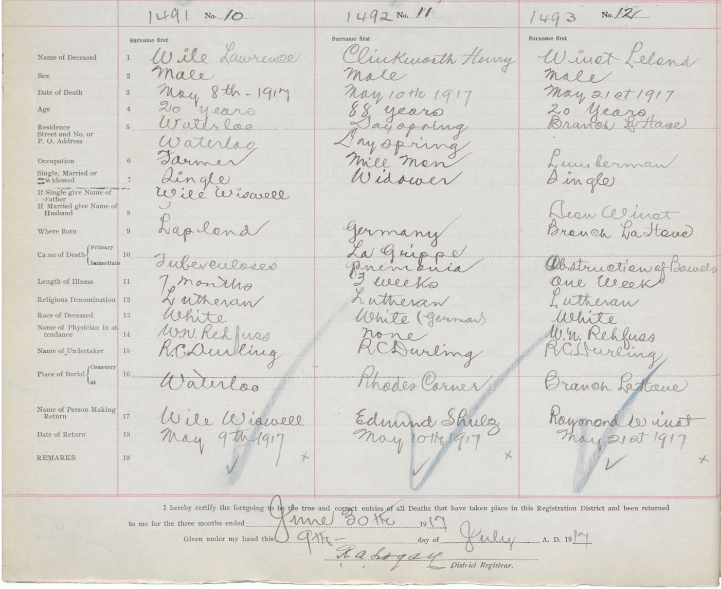 Death Registration: Year: 1917 book: 42 page: 444 number: 1491