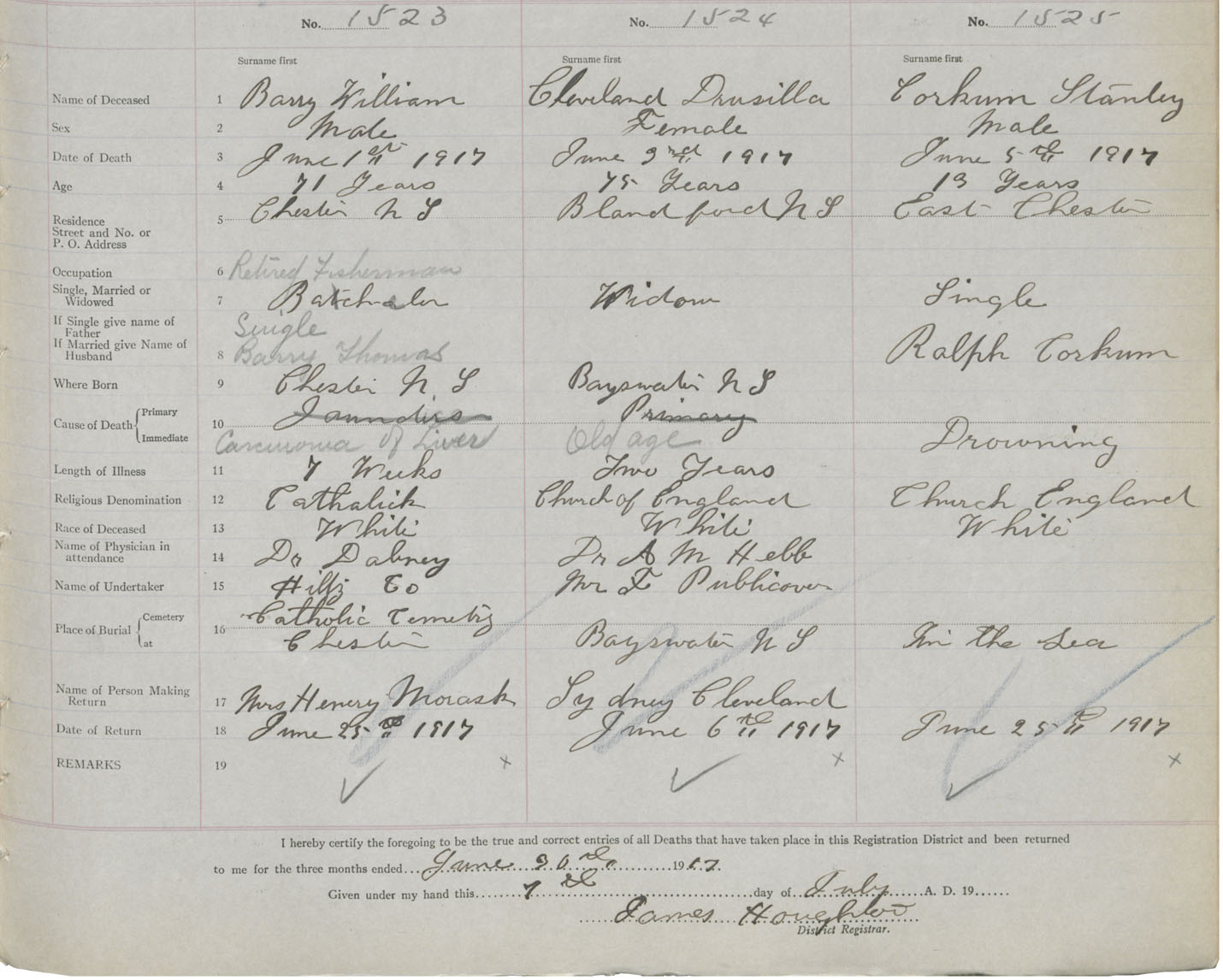 Death Registration: Year: 1917 book: 42 page: 453 number: 1525
