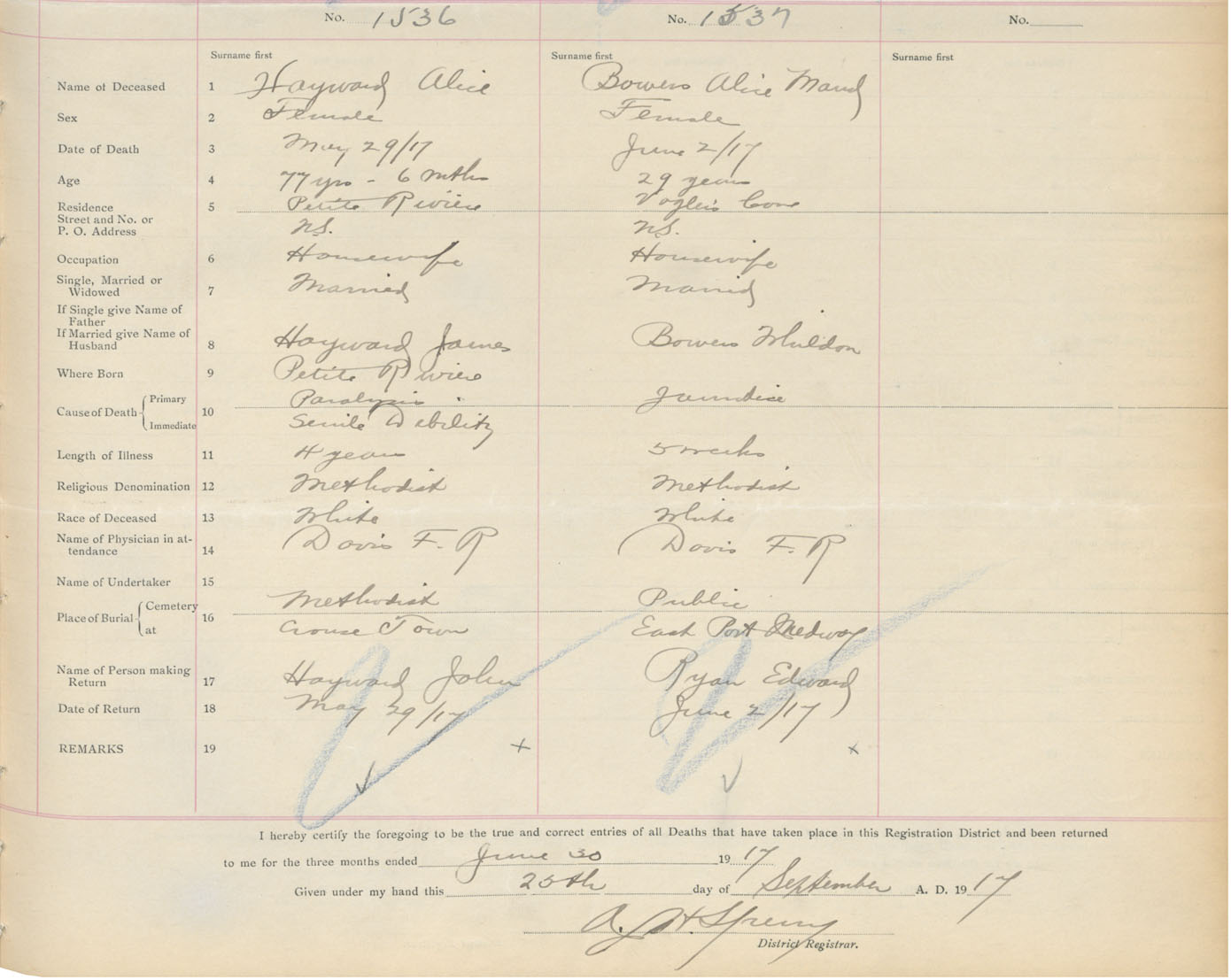 Death Registration: Year: 1917 book: 42 page: 457 number: 1537