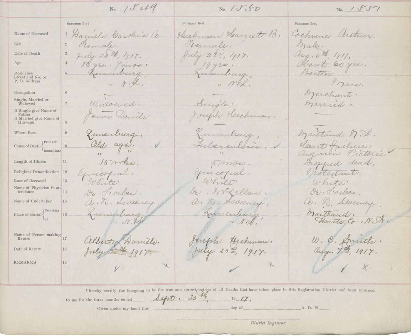Death Registration: Year: 1917 book: 42 page: 465 number: 1551