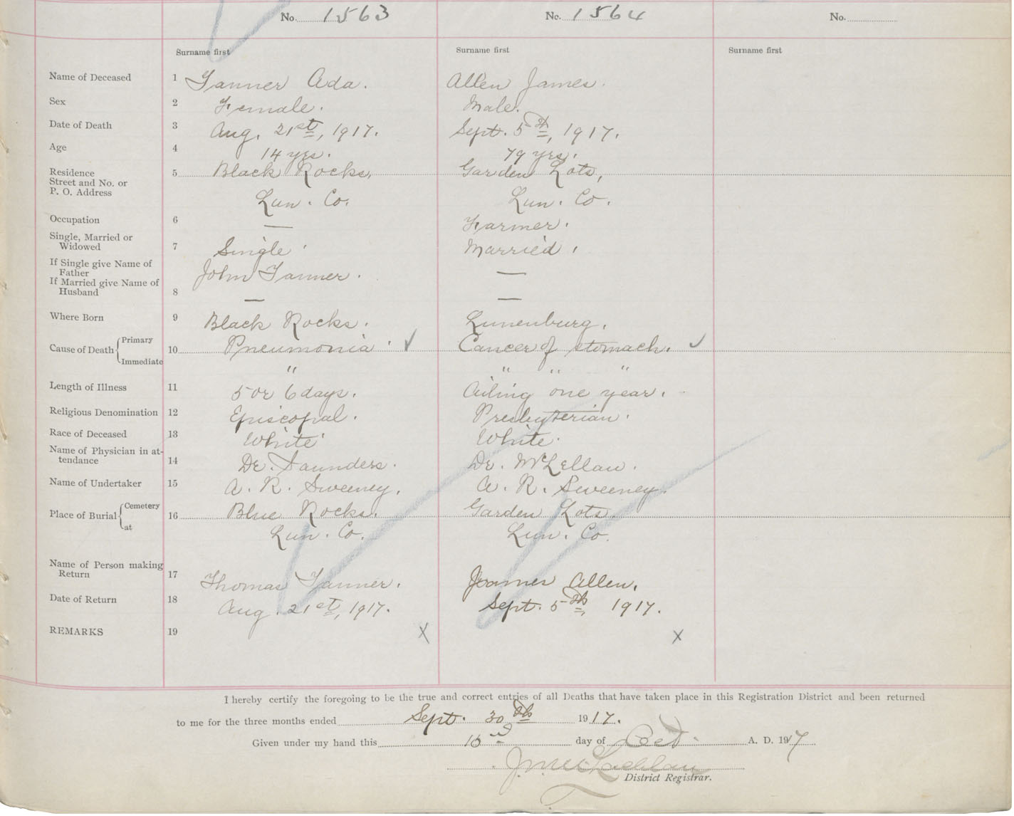 Death Registration: Year: 1917 book: 42 page: 469 number: 1564