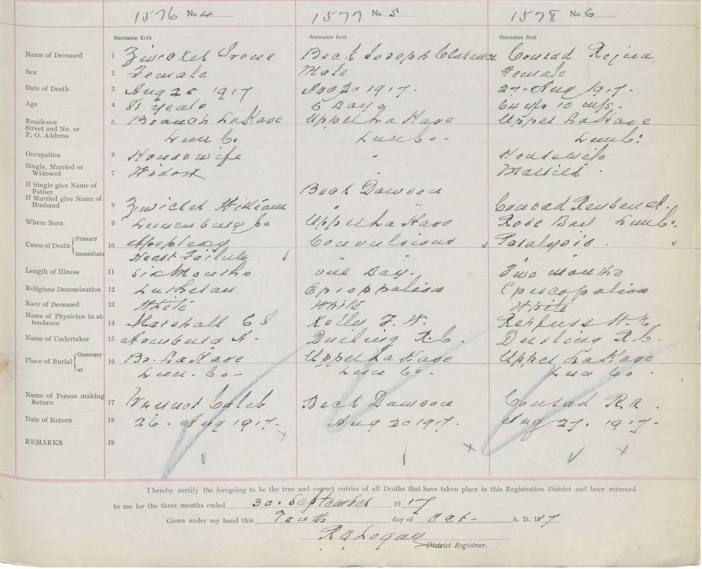 Death Registration: Year: 1917 book: 42 page: 473 number: 1576