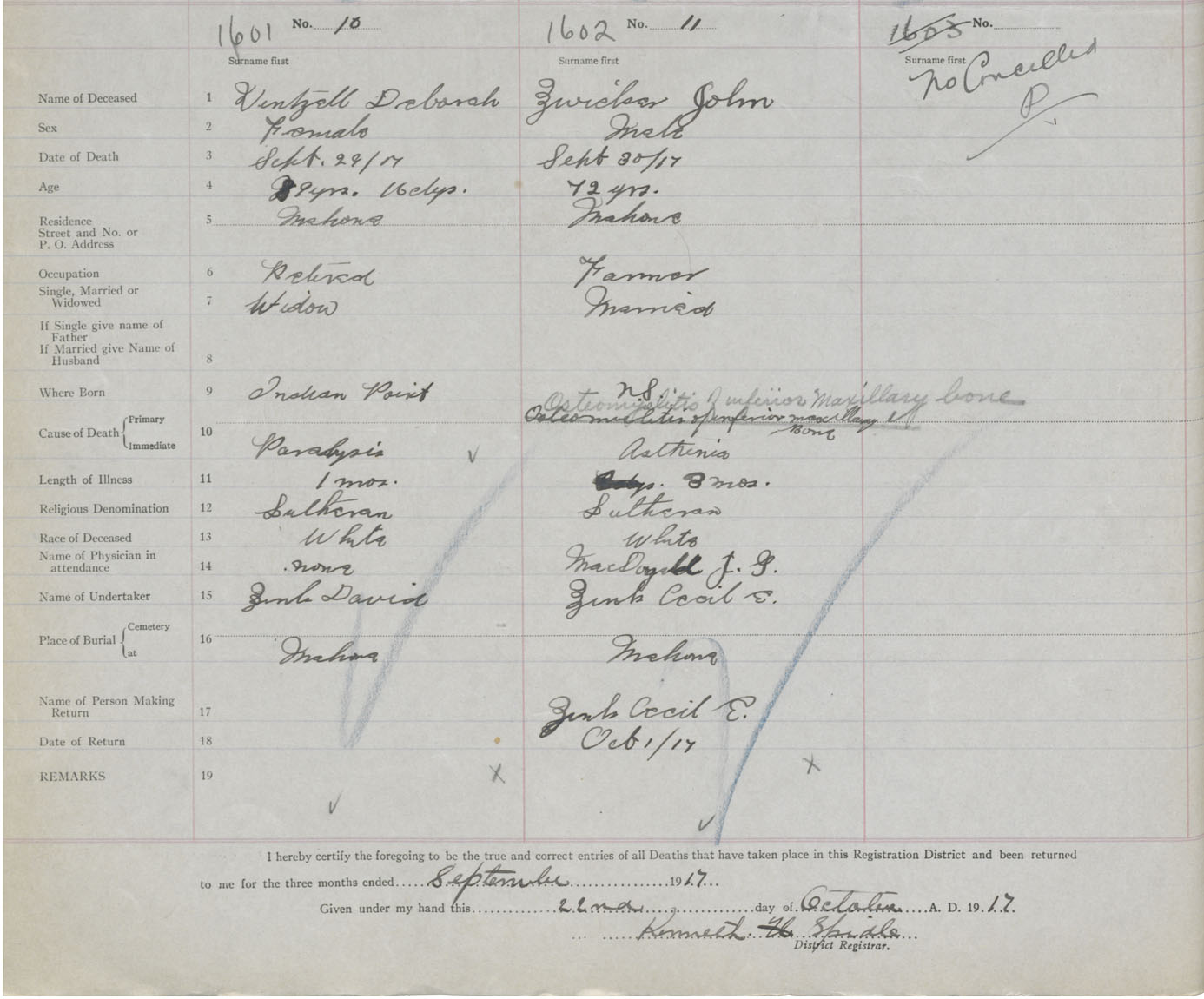 Death Registration: Year: 1917 book: 42 page: 478 number: 1601