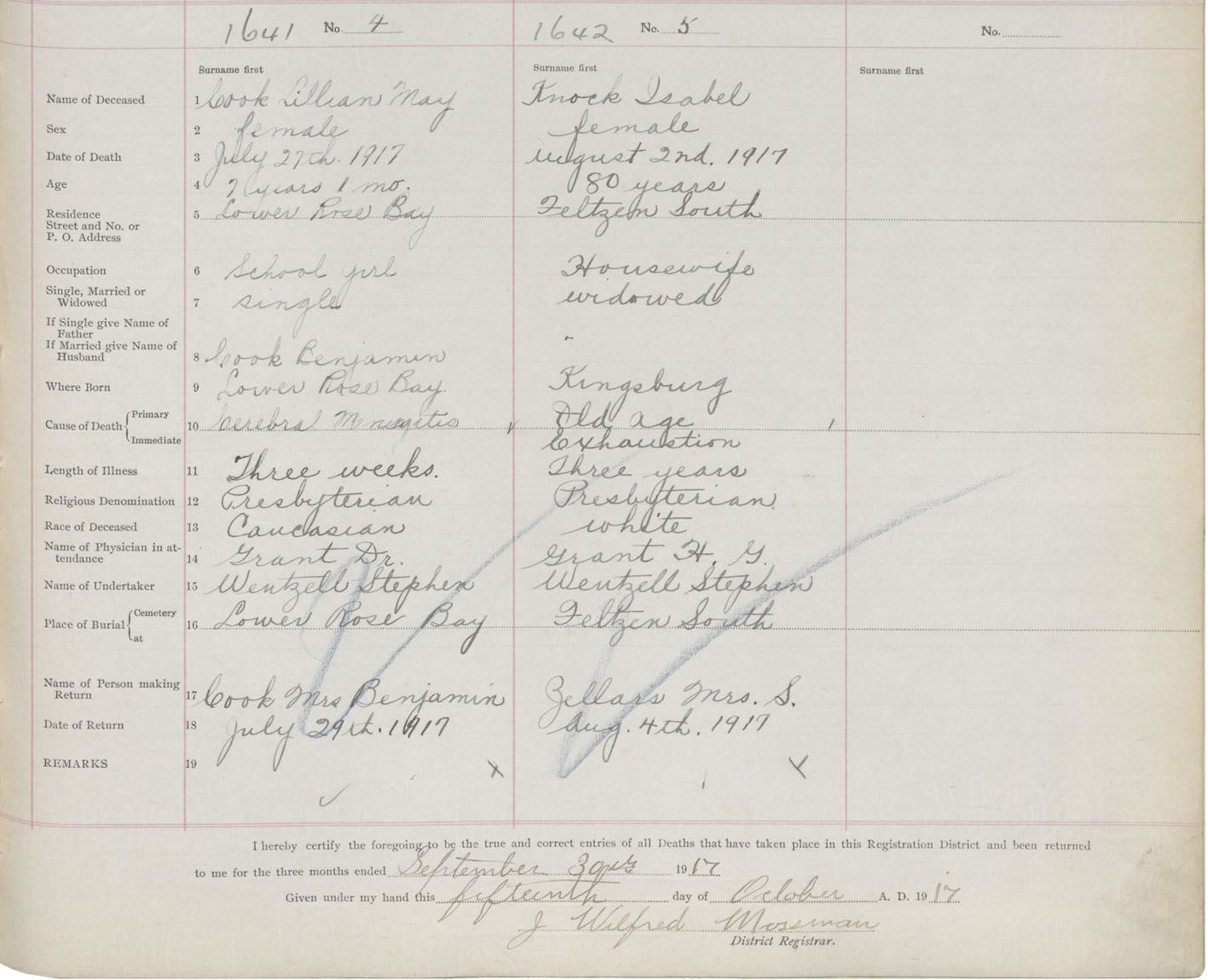 Death Registration: Year: 1917 book: 42 page: 493 number: 1642