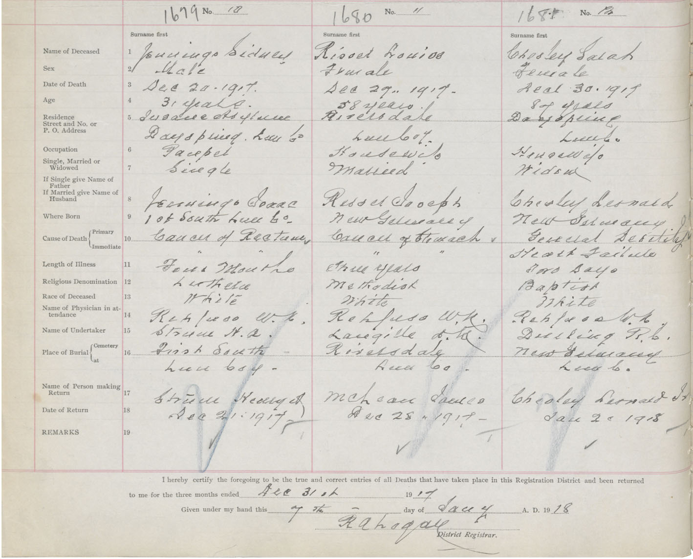 Death Registration: Year: 1917 book: 42 page: 504 number: 1679