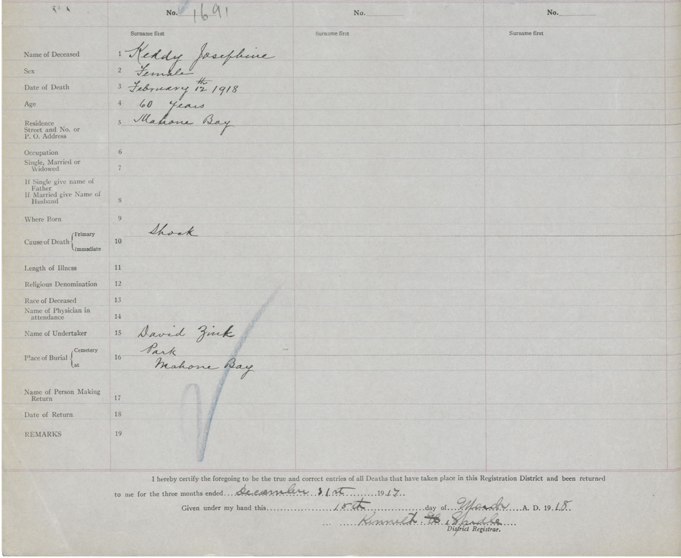 Death Registration: Year: 1917 book: 42 page: 507 number: 1691