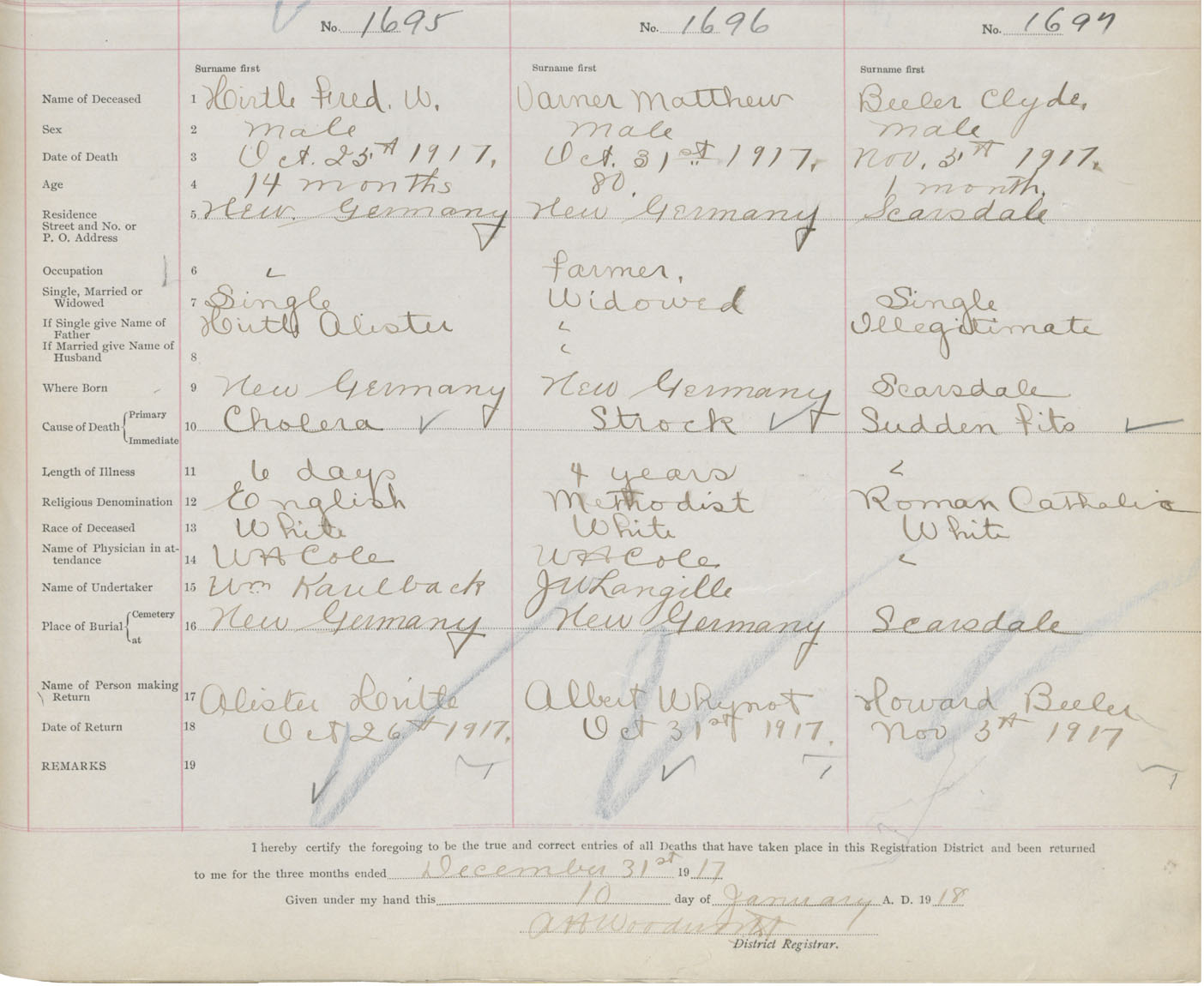 Death Registration: Year: 1917 book: 42 page: 508 number: 1695