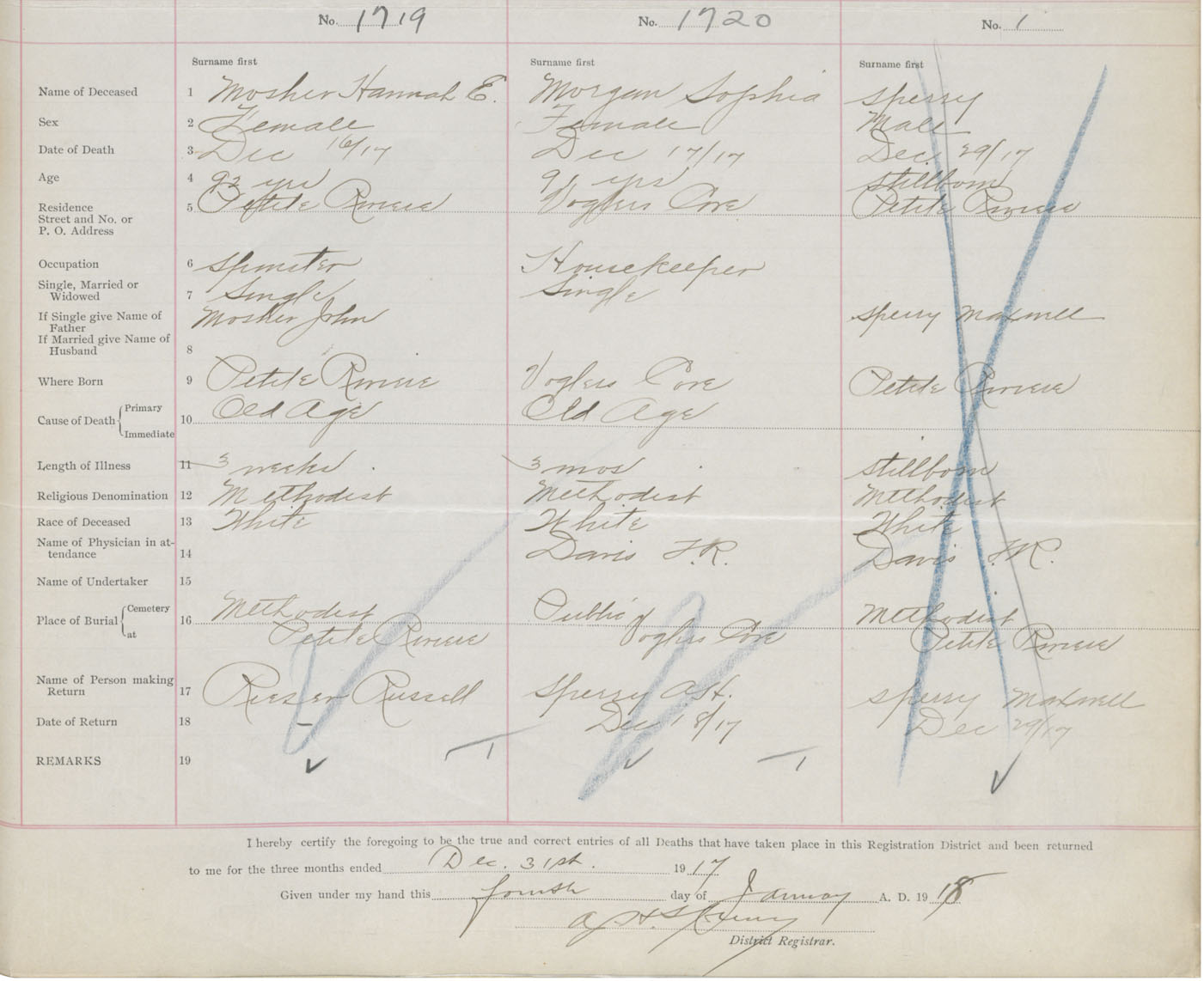 Death Registration: Year: 1917 book: 42 page: 519 number: 1720