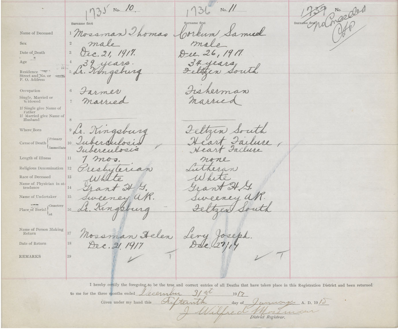 Death Registration: Year: 1917 book: 42 page: 524 number: 1736