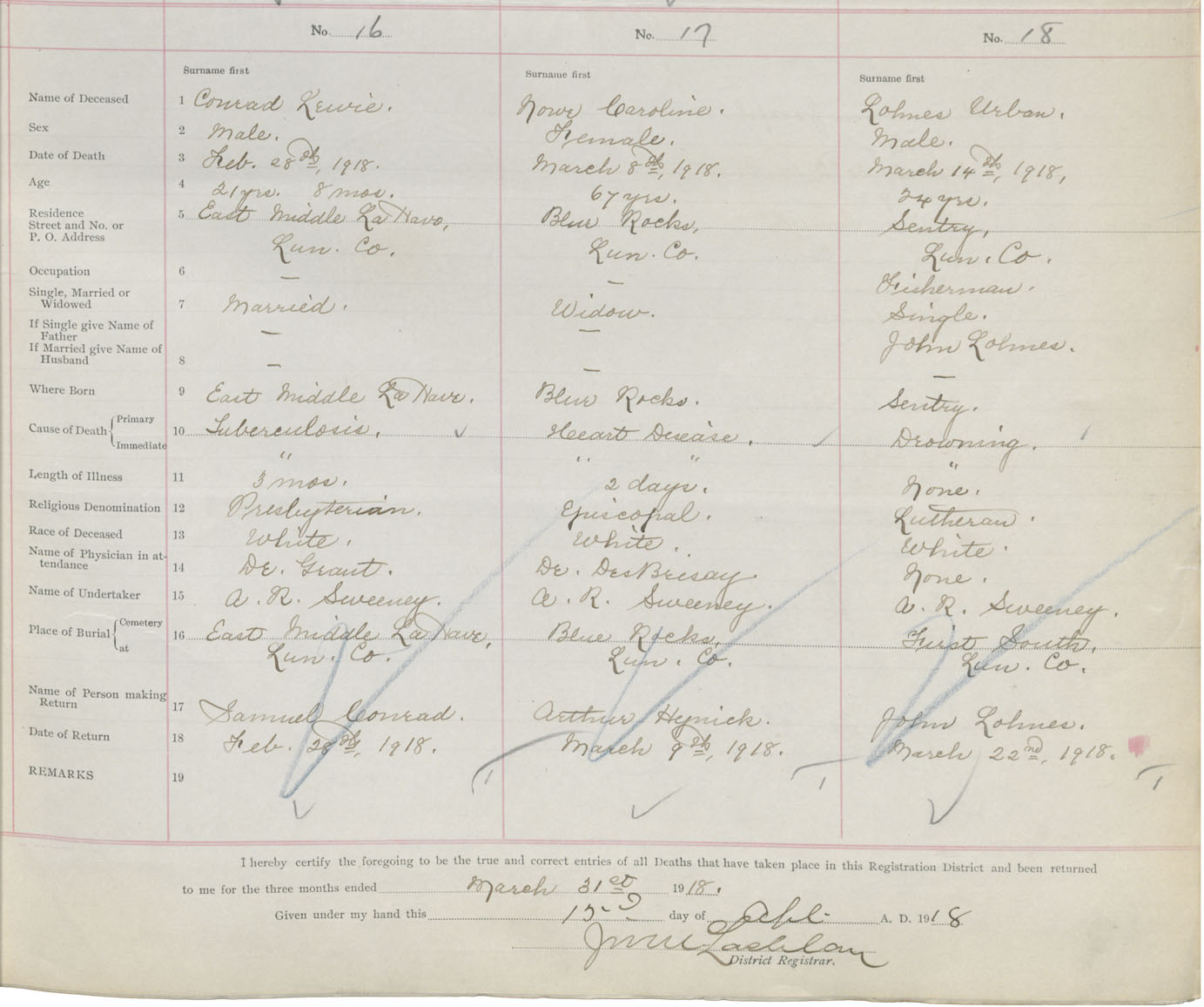 Death Registration: Year: 1918 book: 43 page: 5 number: 16
