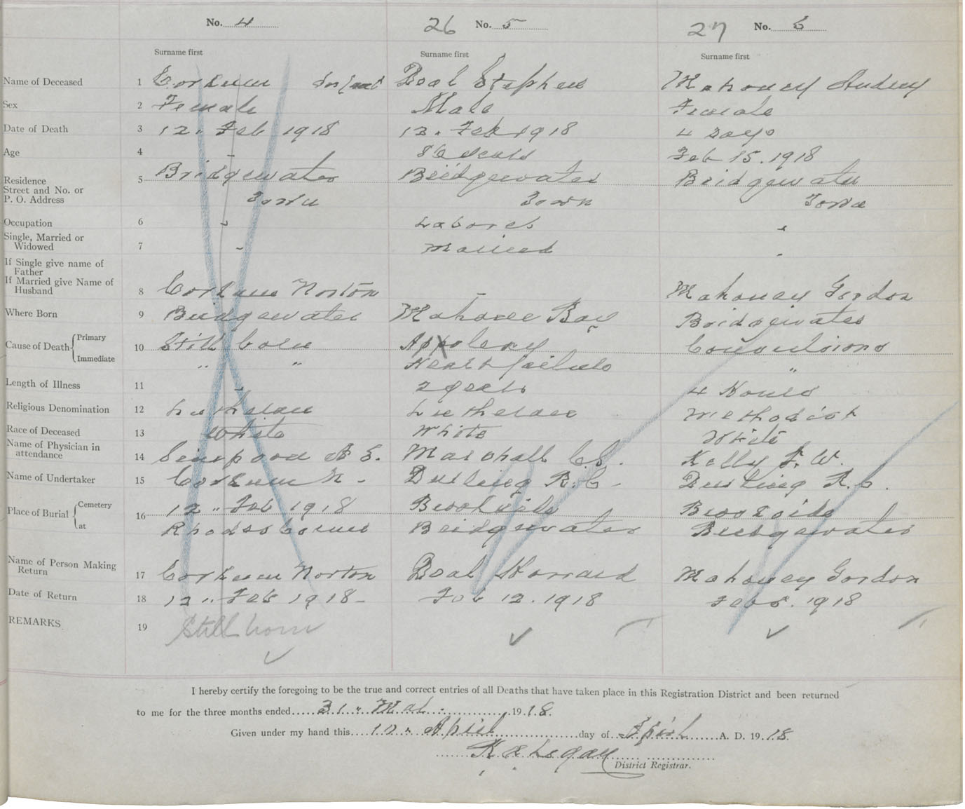 Death Registration: Year: 1918 book: 43 page: 7 number: 26