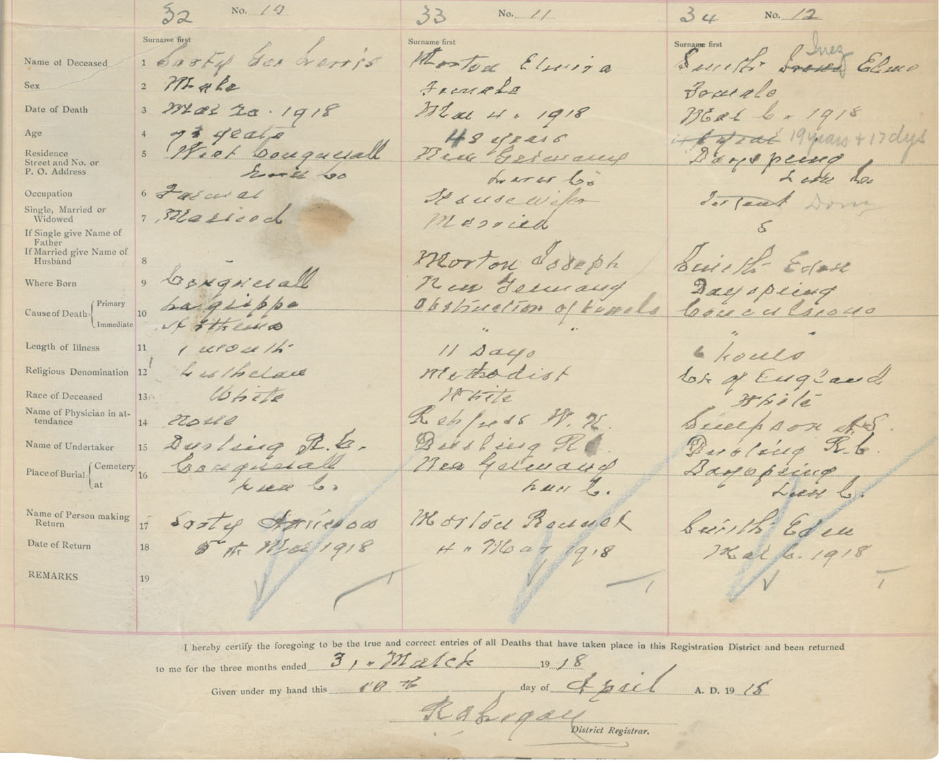 Death Registration: Year: 1918 book: 43 page: 9 number: 32